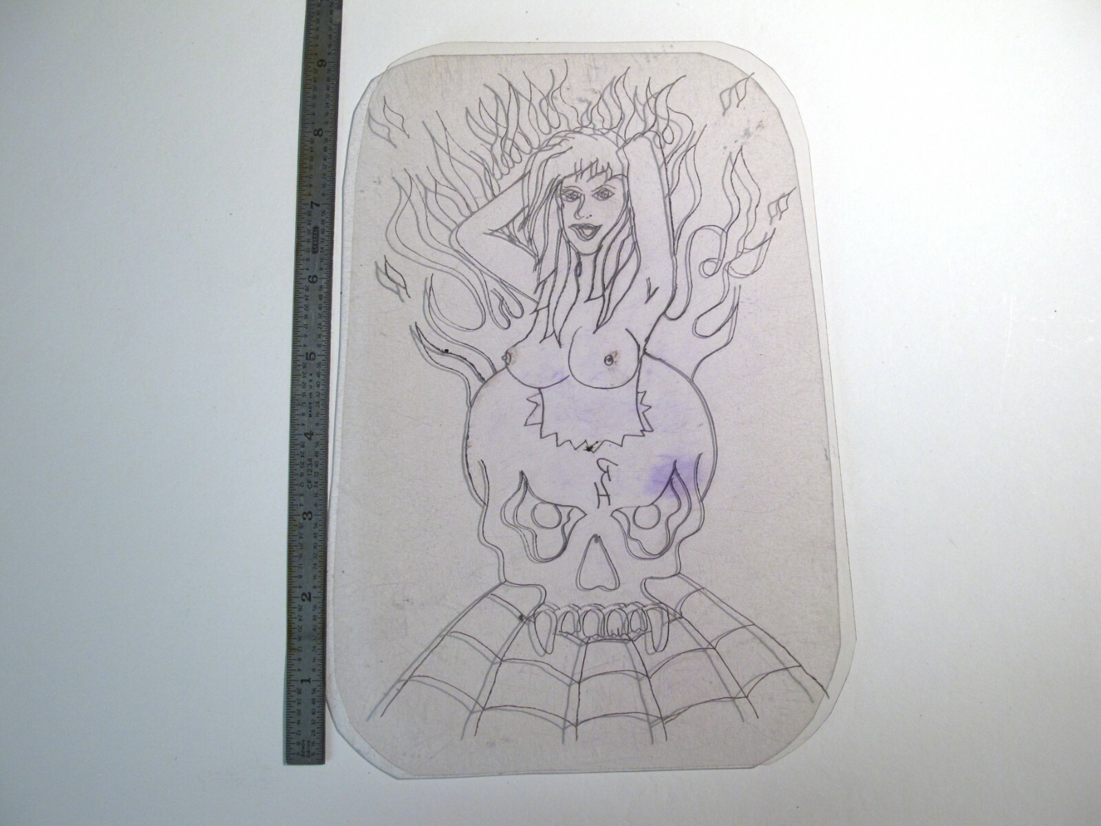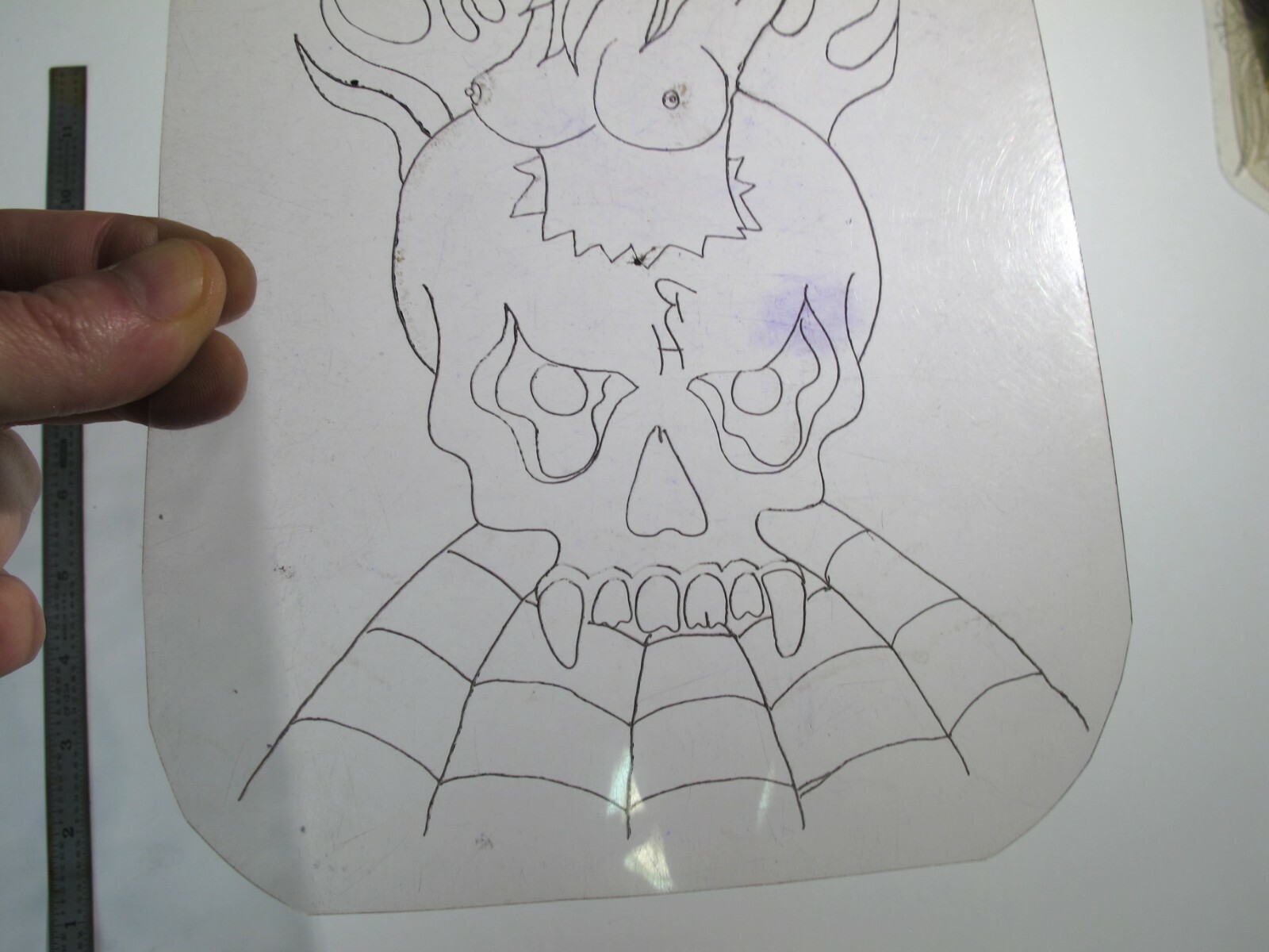 • vtg 1960s 1970s Tattoo acetate stencil Chick Skull Spider Web LG. signed