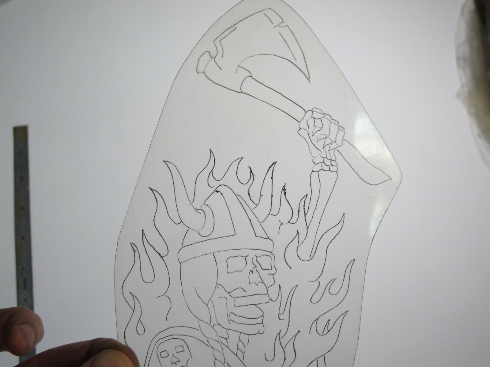 vtg 1960s 1970s Tattoo acetate stencil Army of the Dead Viking LG. signed