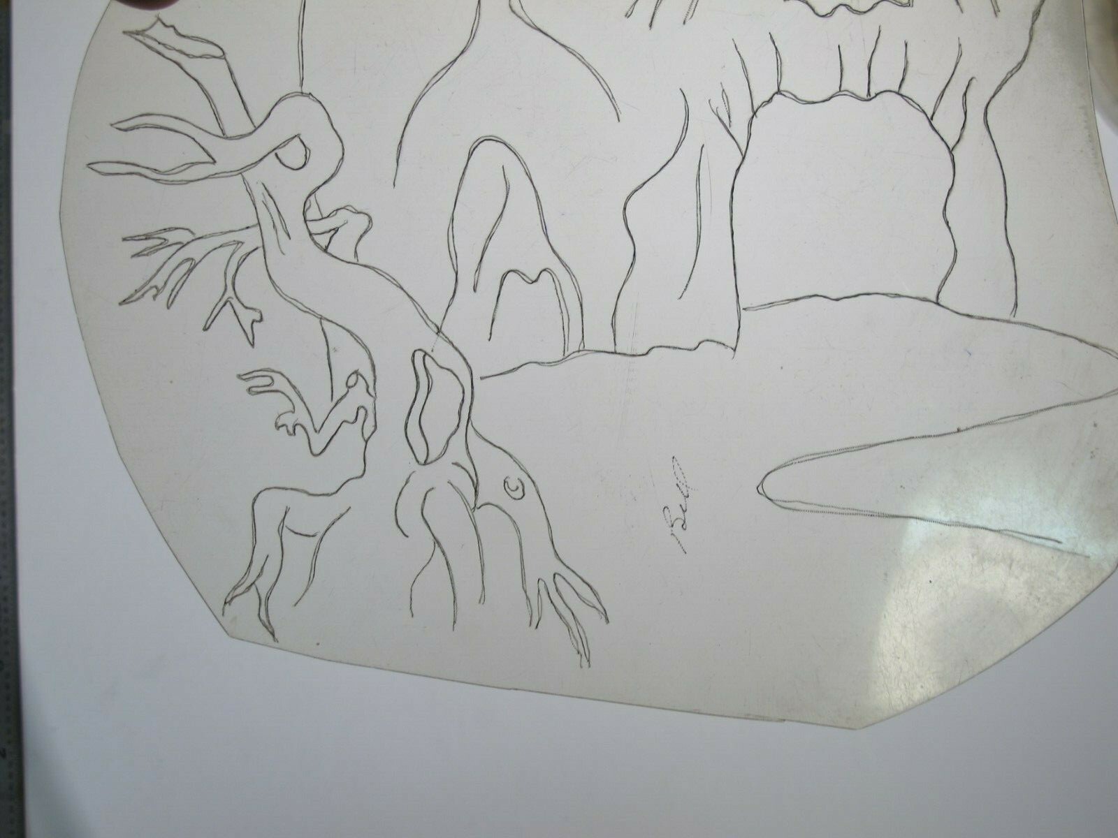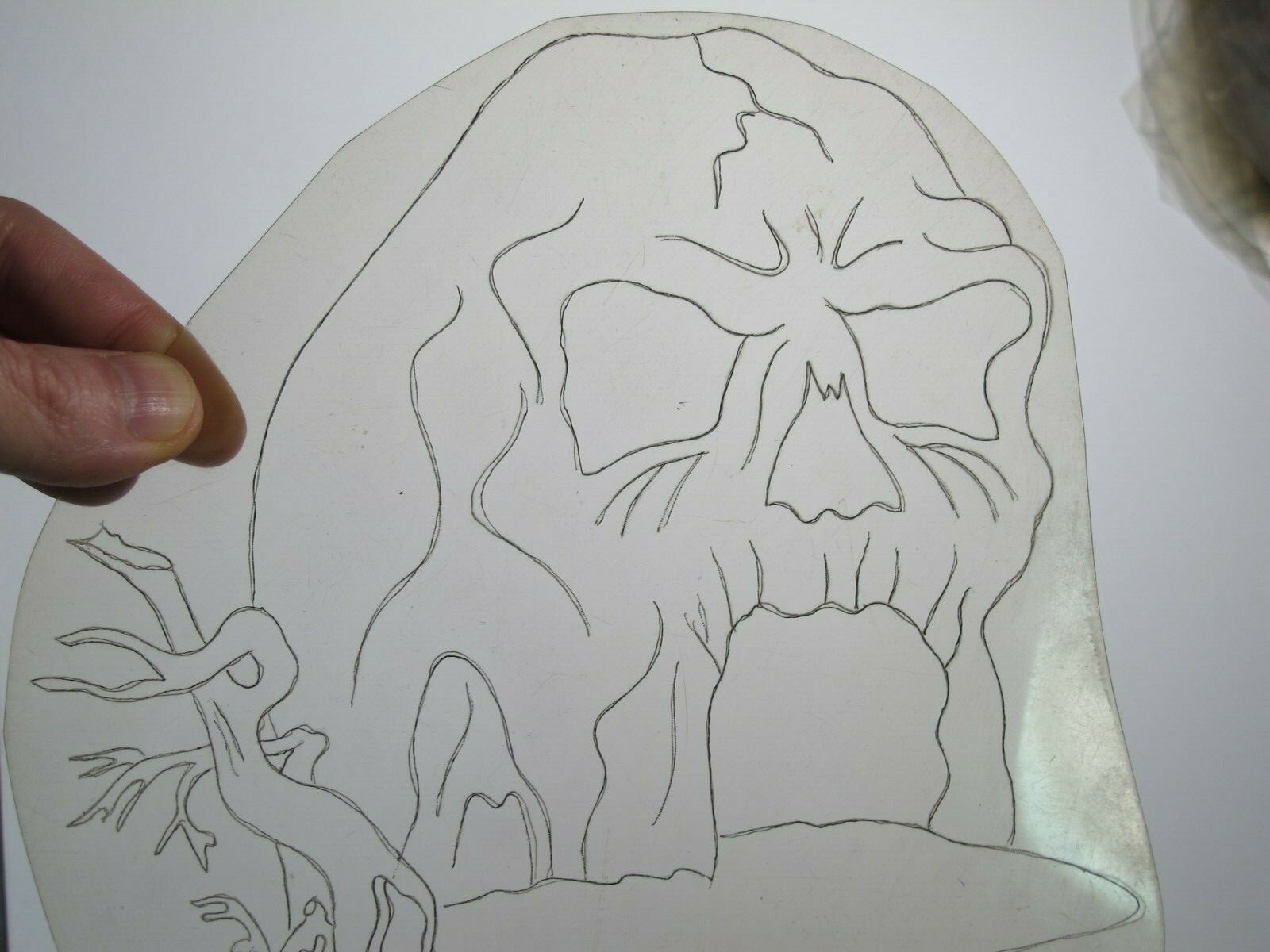 vtg 1960s 1970s Tattoo acetate stencil Skull Cave LG. signed