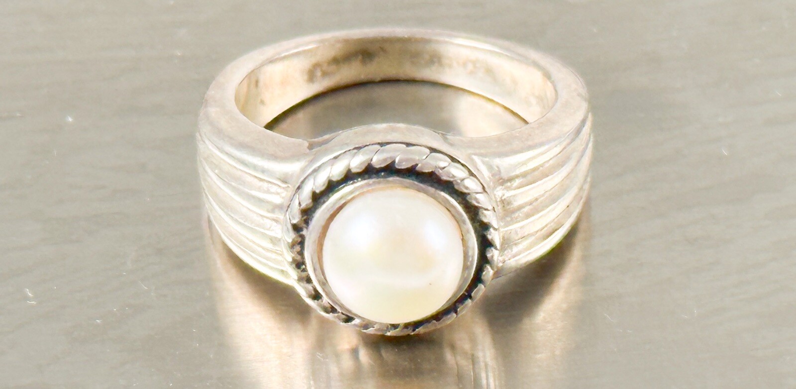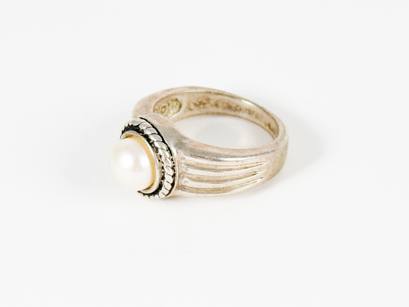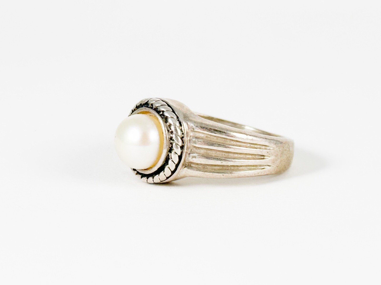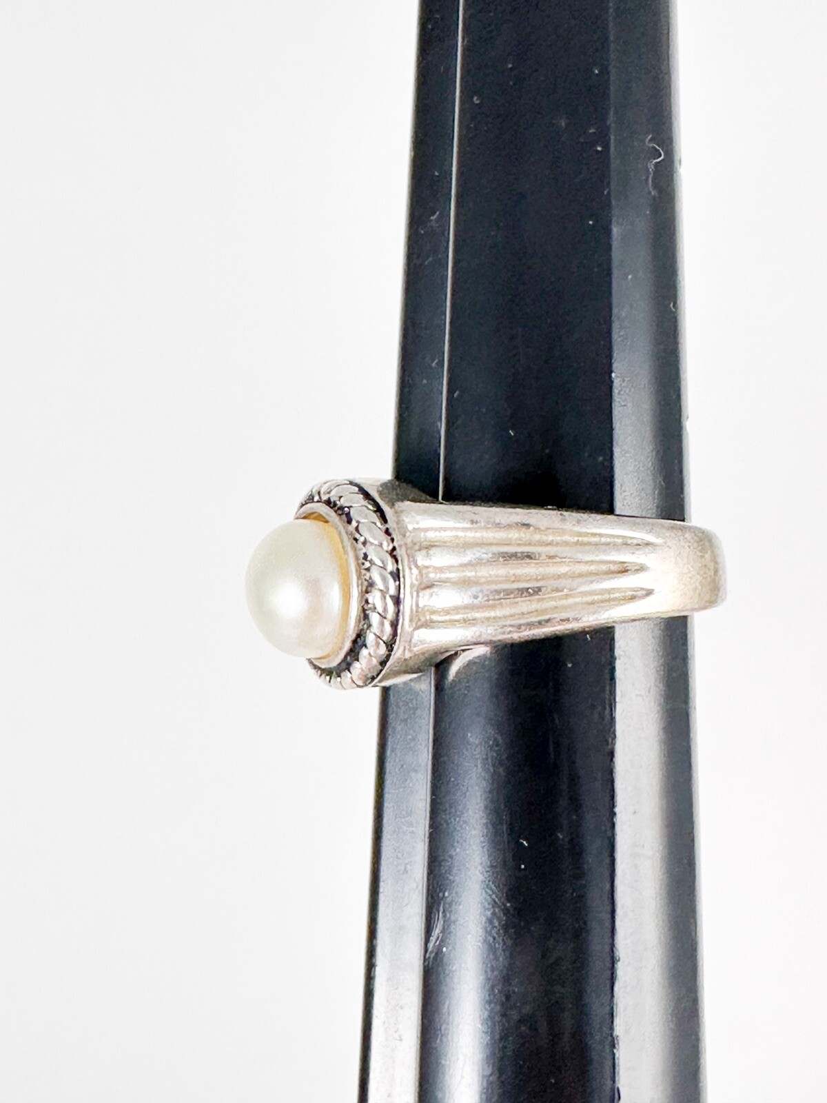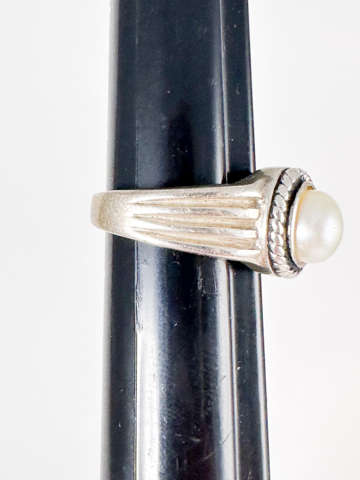 Vintage Sz 6.5 Sterling Silver 925 Faux Pearl Ring Modernist