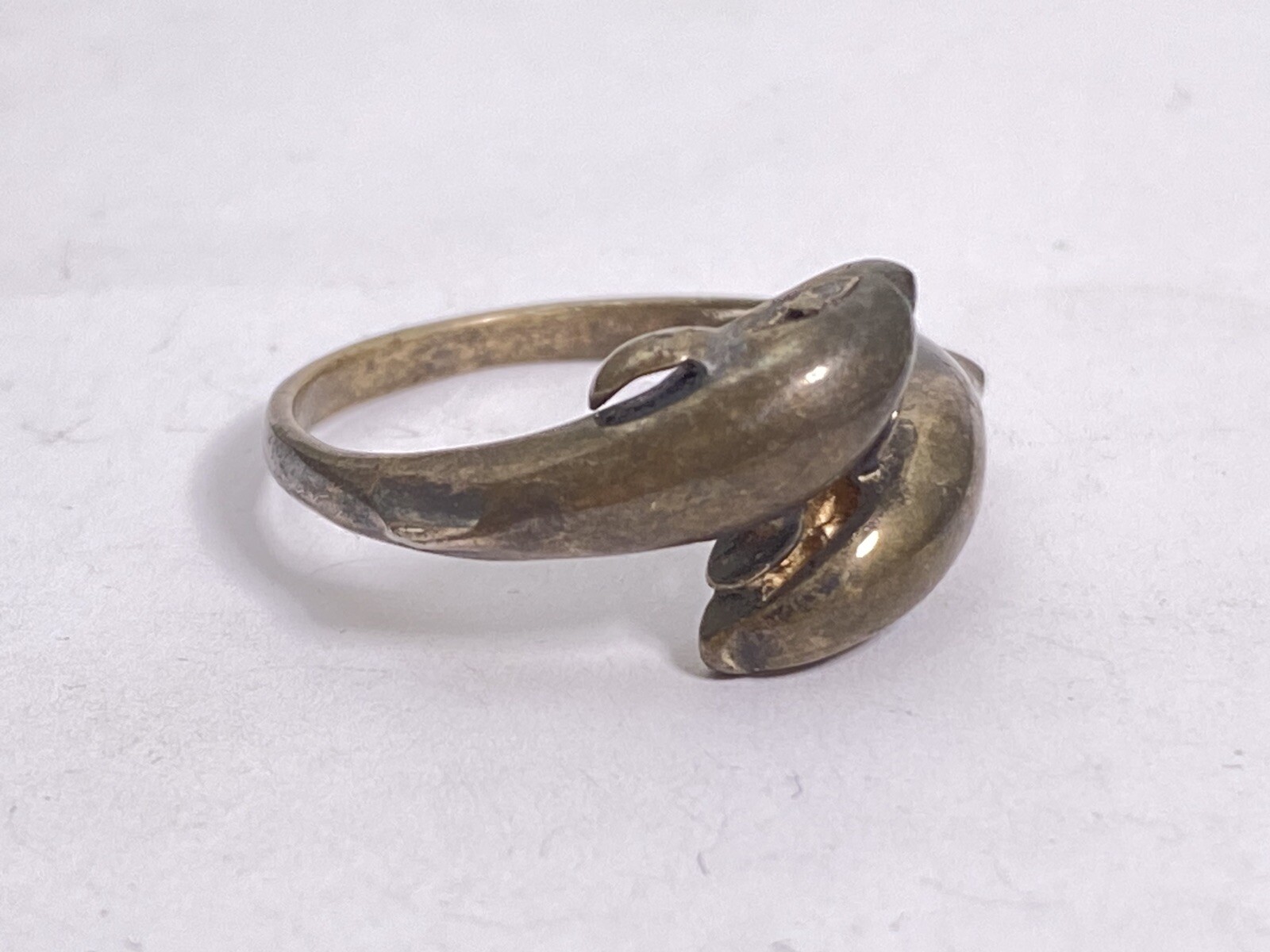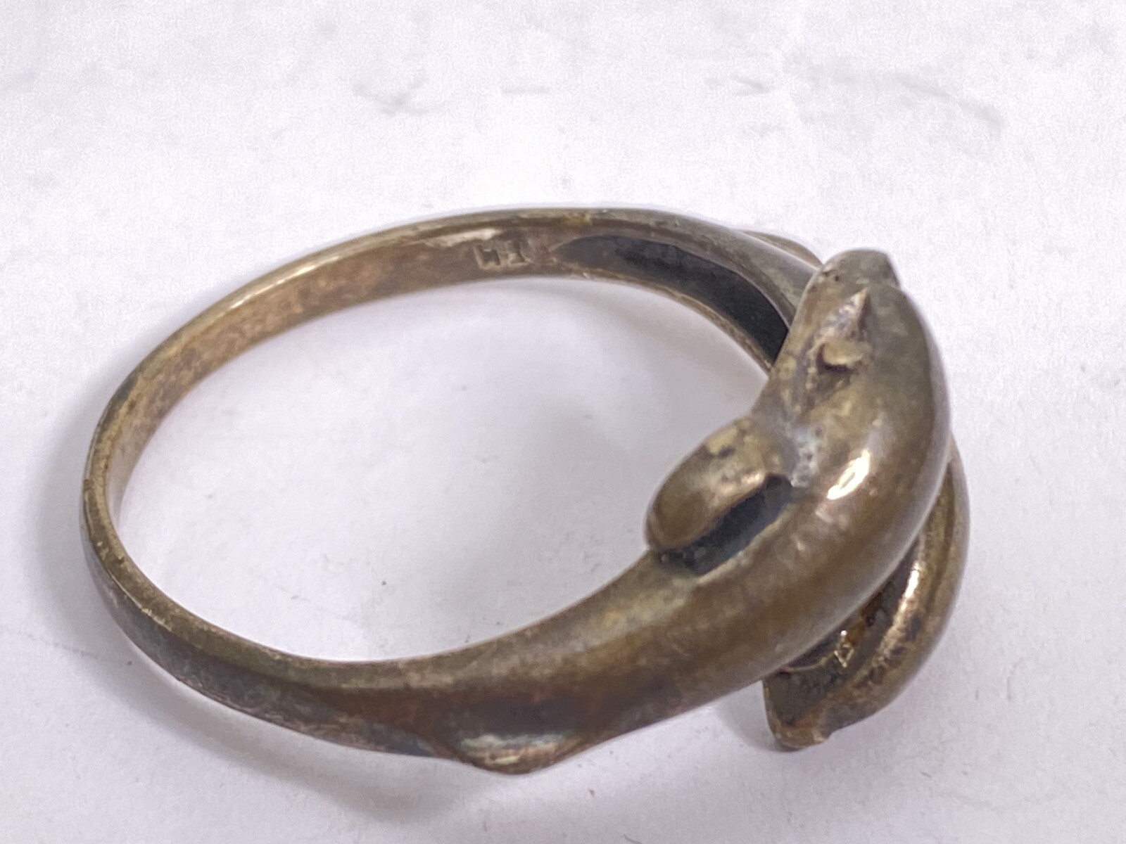 как выглядит Vintage Sterling Silver Double Leaping Dolphin Ring Size 8 фото