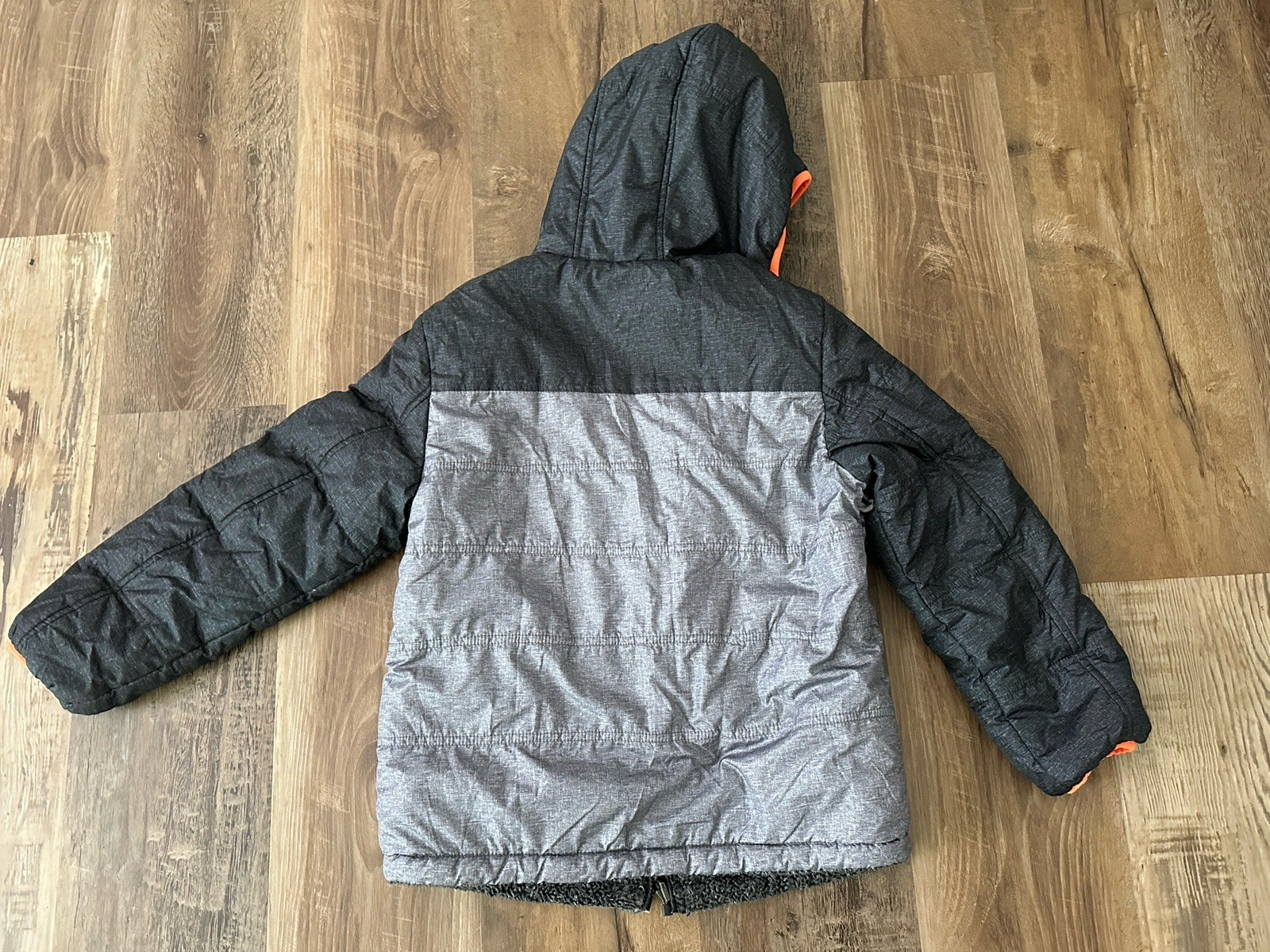 как выглядит Gerry Unisex Kids Sz Small 7-8 Reversible Hooded Jacket Grey Black Zip Front фото