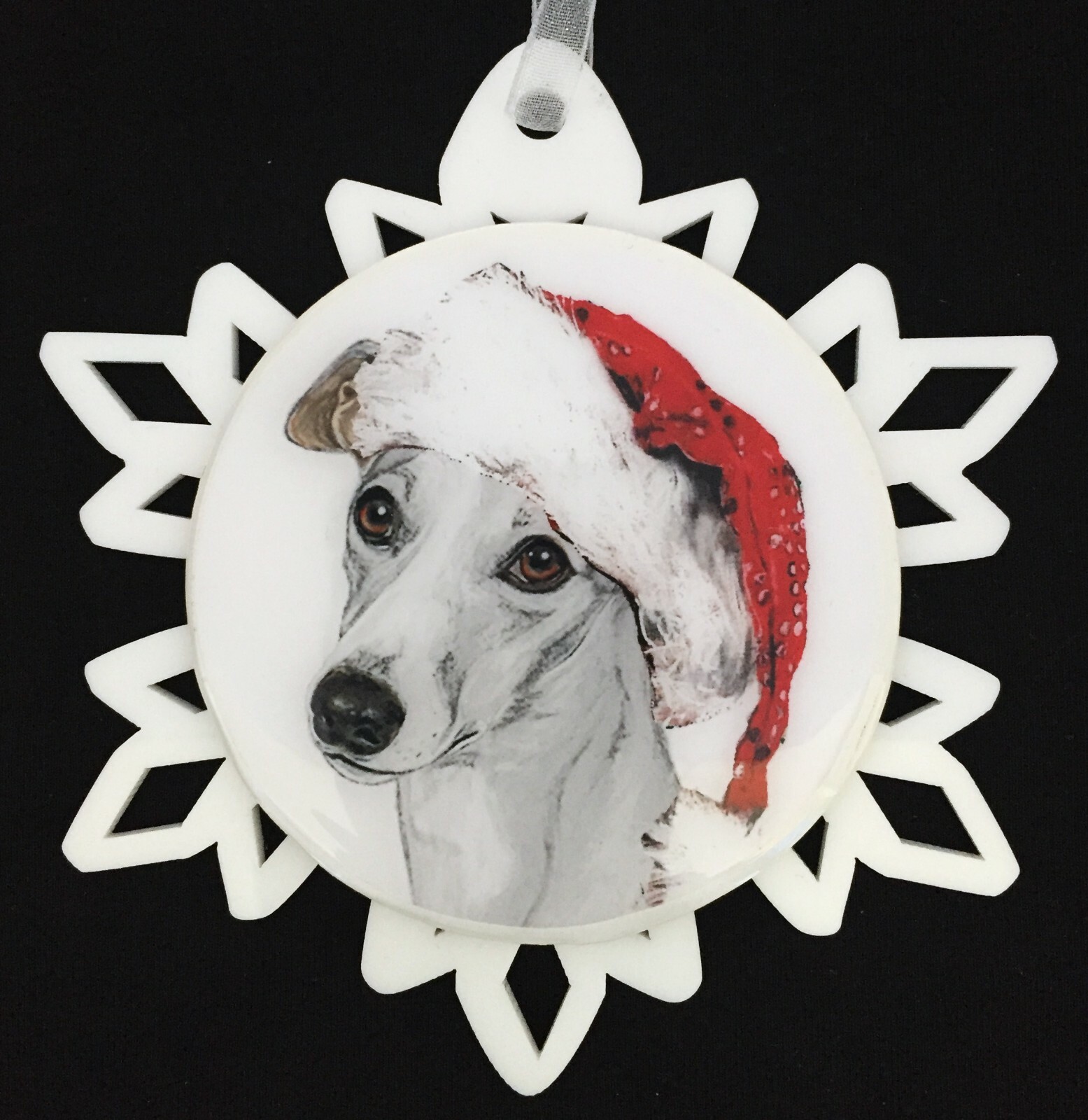 • Santa Greyhound Dog Christmas Ornament - Free Personalization