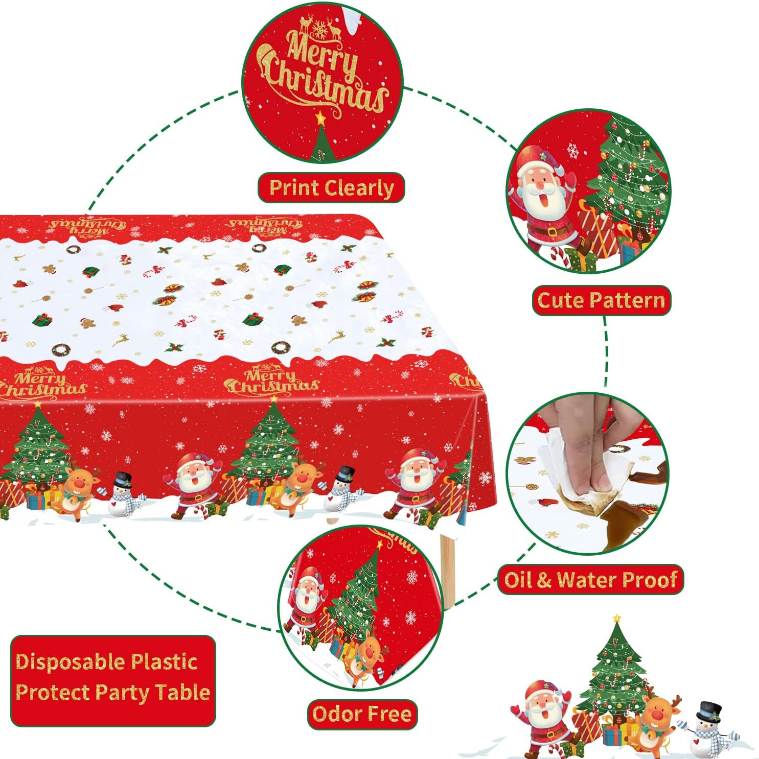 4 PCS Christmas Tablecloth Party Decorations - Merry Christmas Santa Disposable
