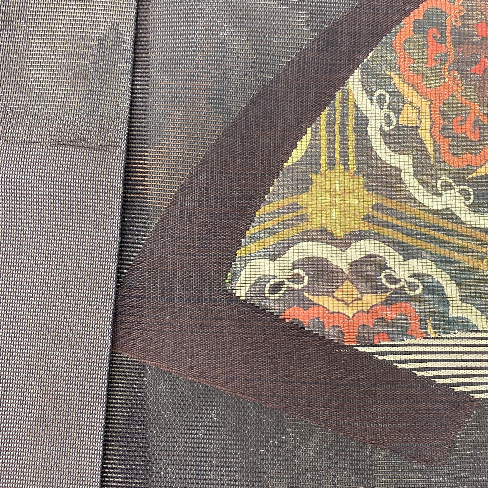 как выглядит Japanese Vintage Kimono Nagoya Obi Polyester Brown Mesh Traditional 138 x11 in фото