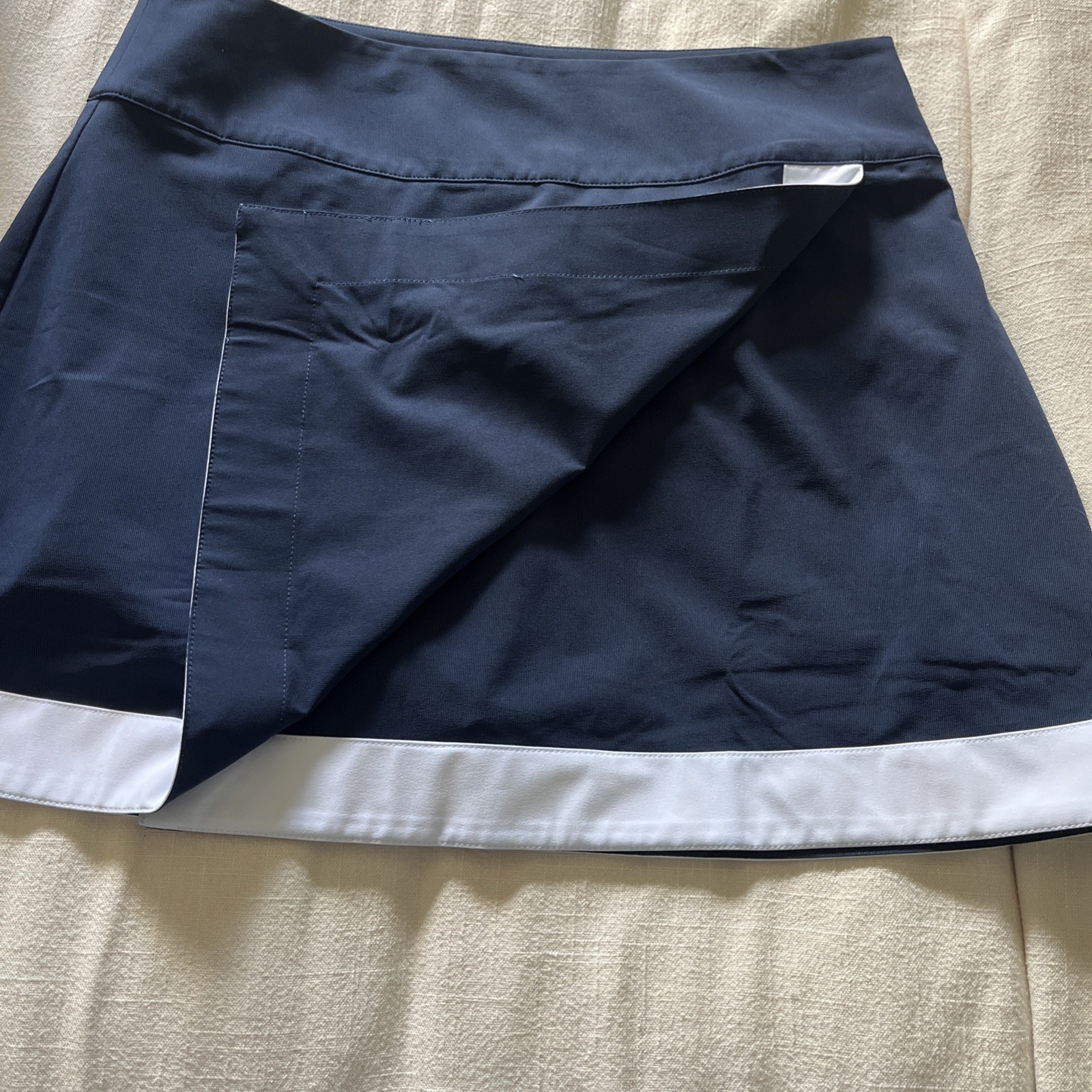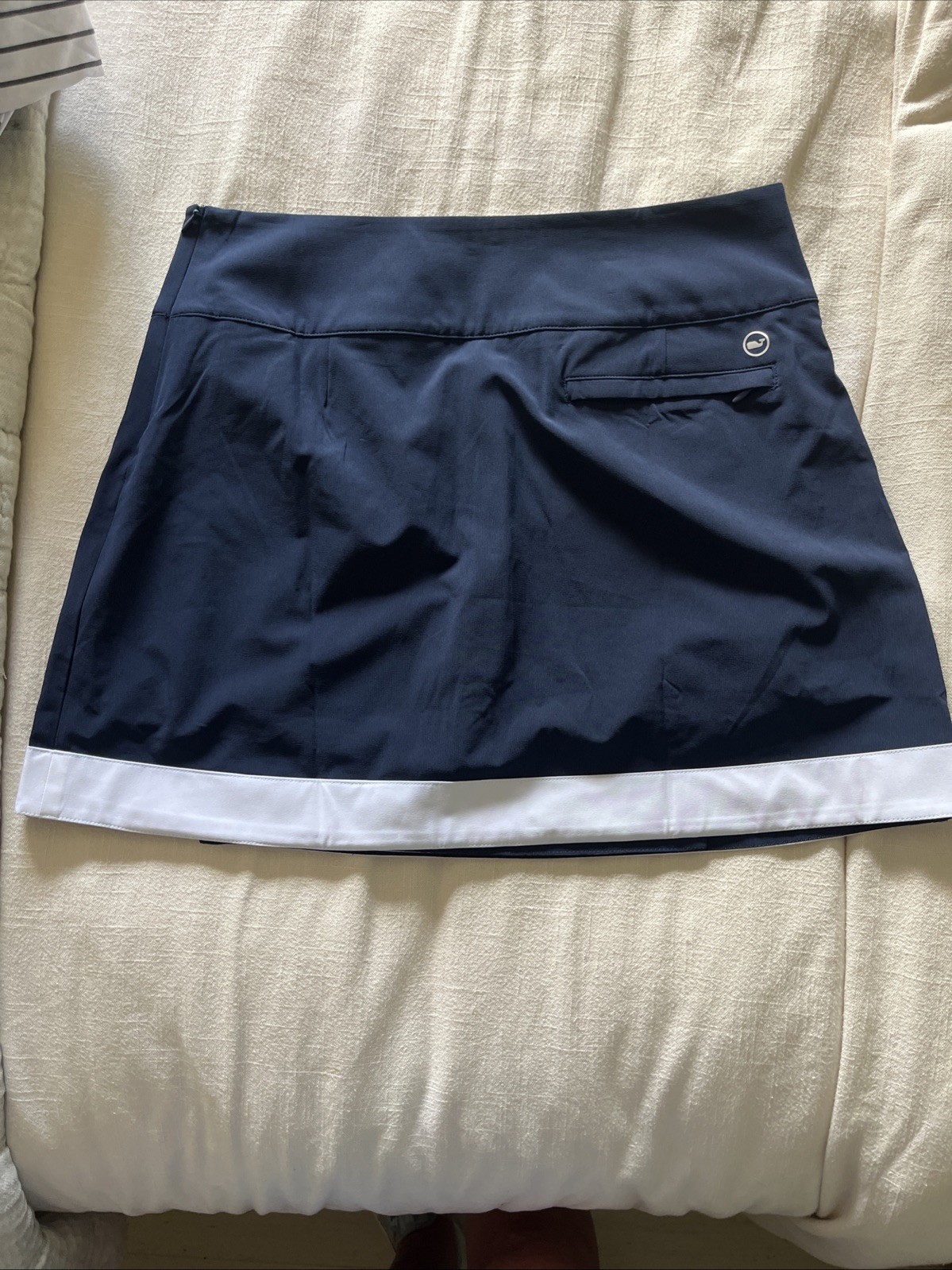 как выглядит NWOT Vineyard Vines waistband stripe Side Zip Mini skirt size S Dark Blue White фото