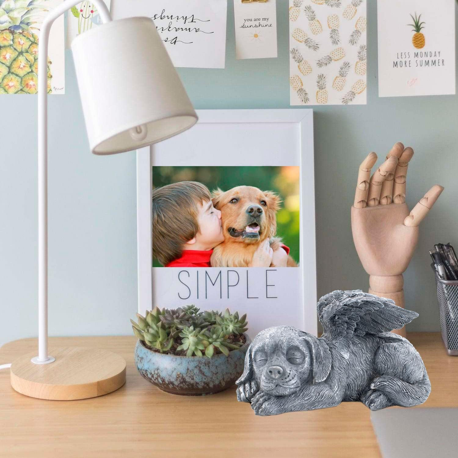 Dog Memorial Stone Resin Statue Pets Sleeping Angel Dog Keepsake Marker Grave Ha