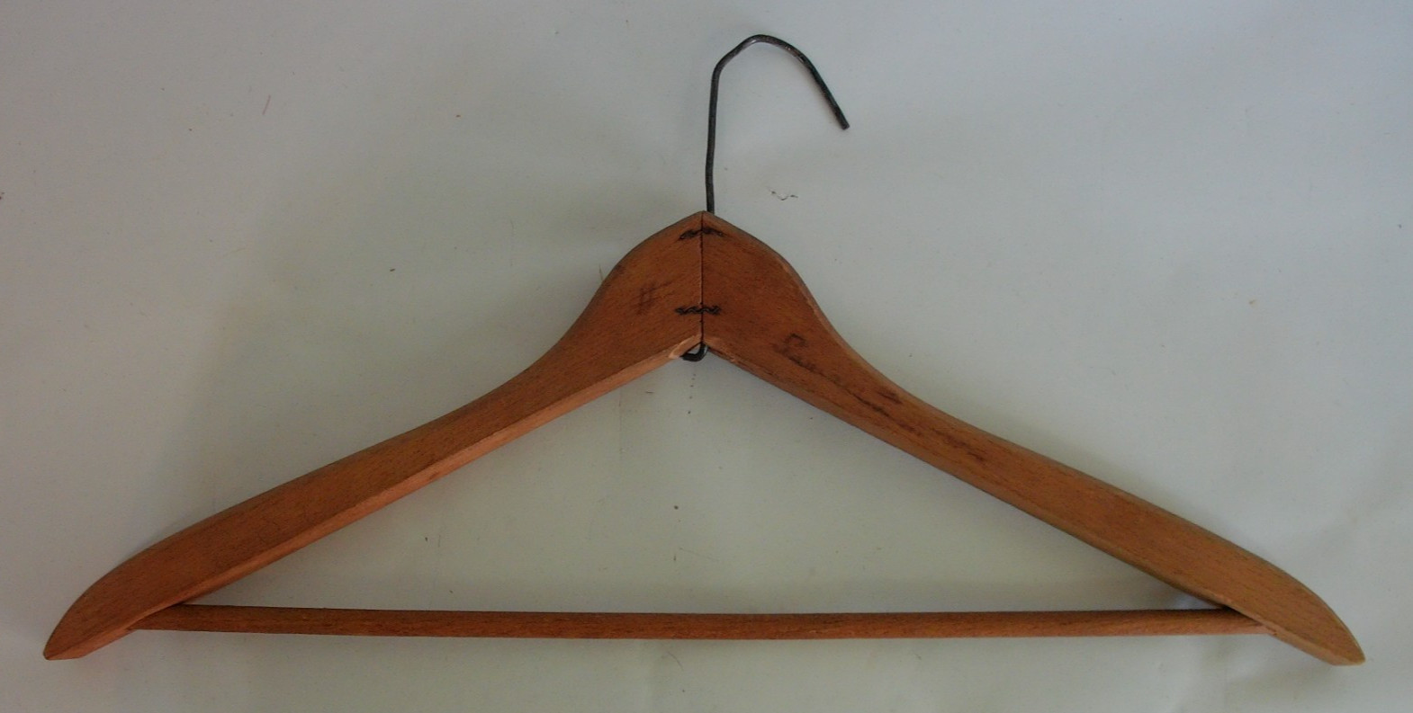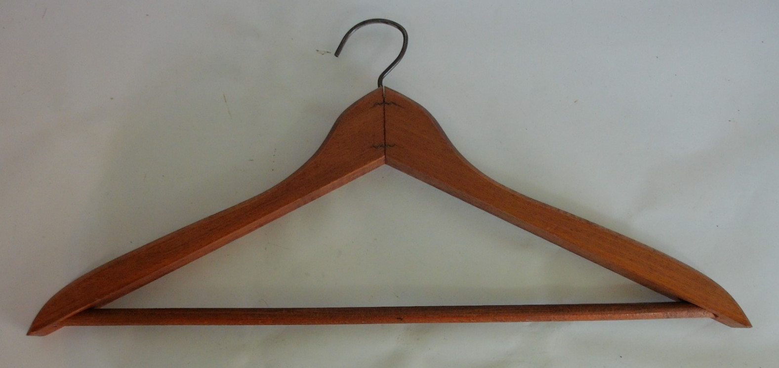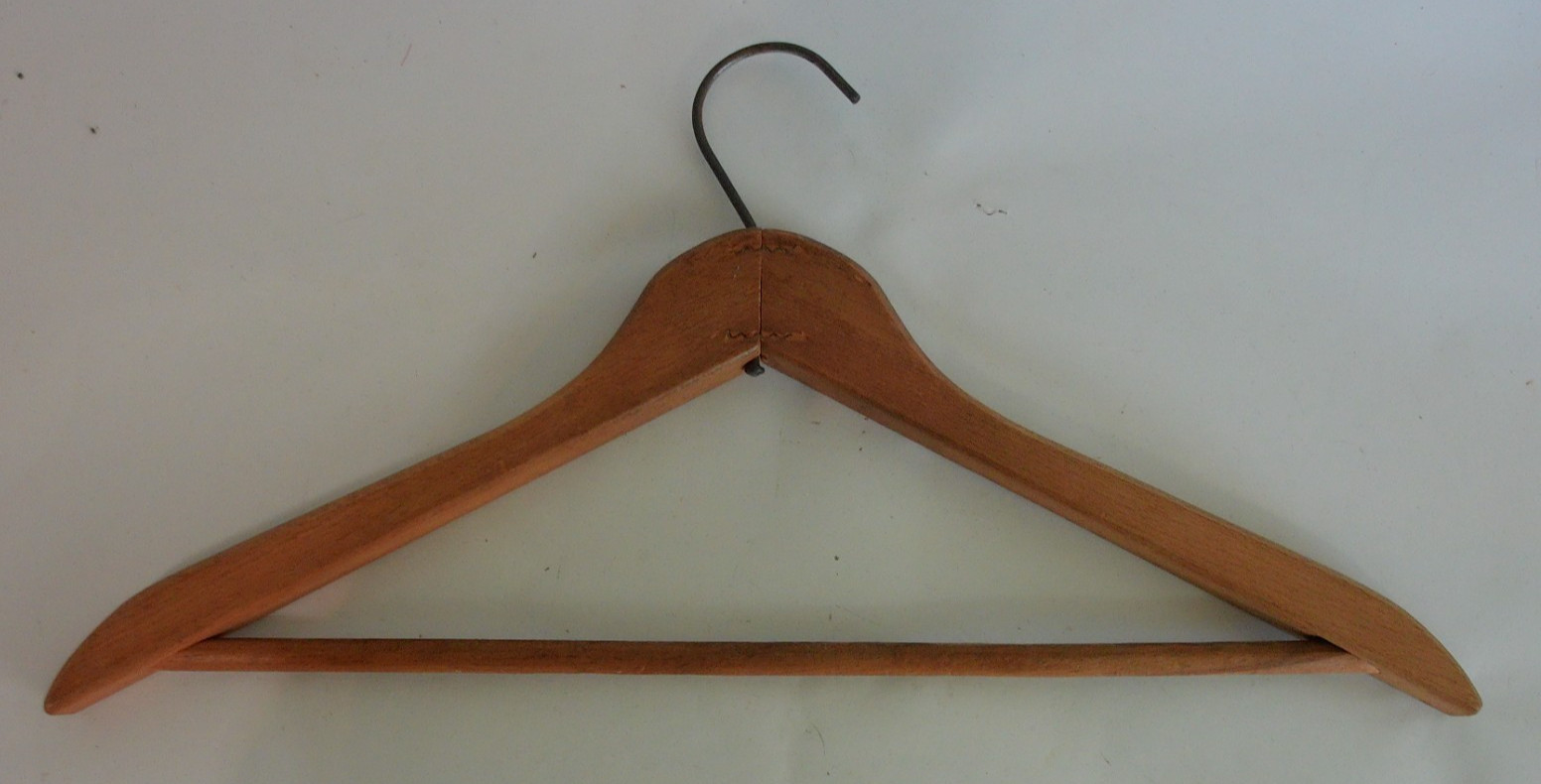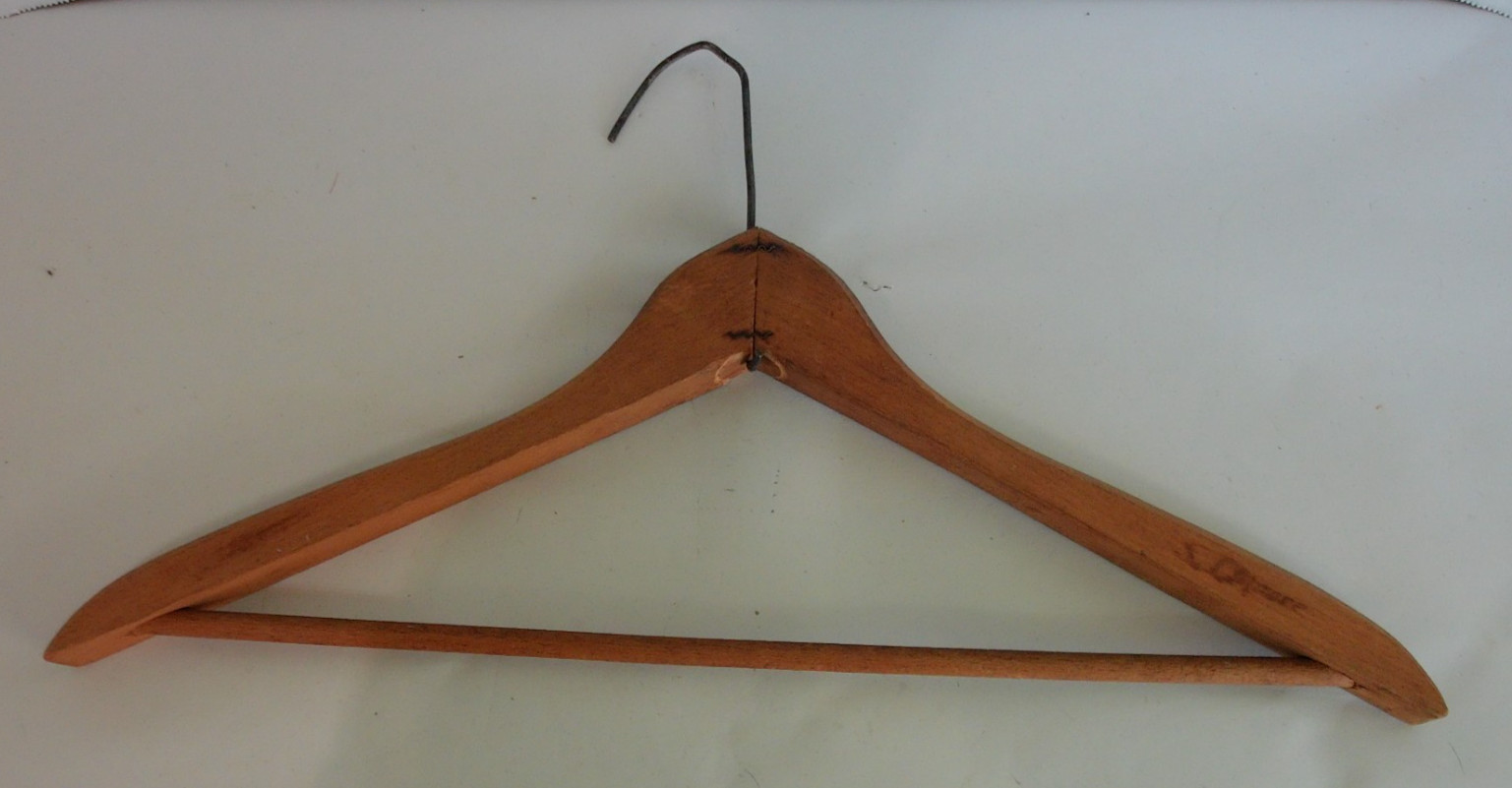 как выглядит Lot of 4 Vtg Wooden Hangers Cleaners Advertising Wood Hangers 18" Across фото