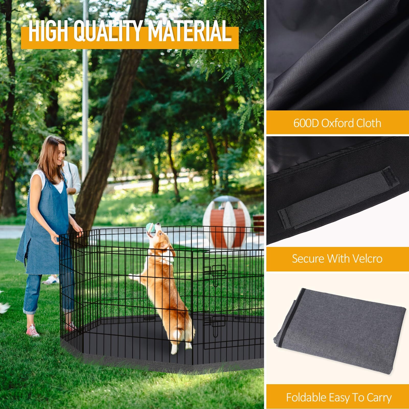 Dog Playpen Octagon Metal Exercise Pet Playpen 8 Panels 24 Inch Bottom Pad Cover
