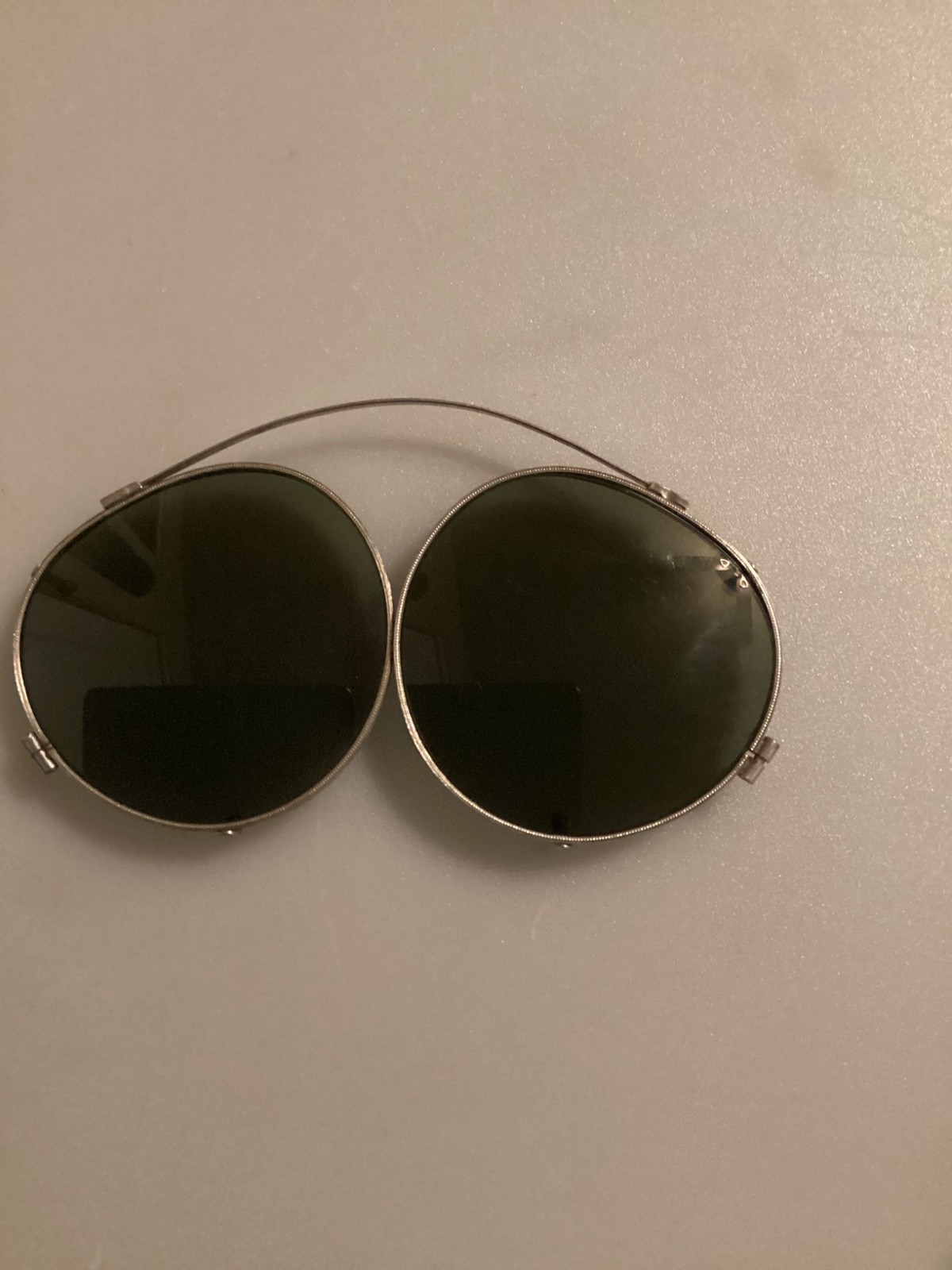 как выглядит VINTAGE PAIR OF CLIP ON DARK BROWN LENS FOLDING SUNGLASSES W/ CASE фото