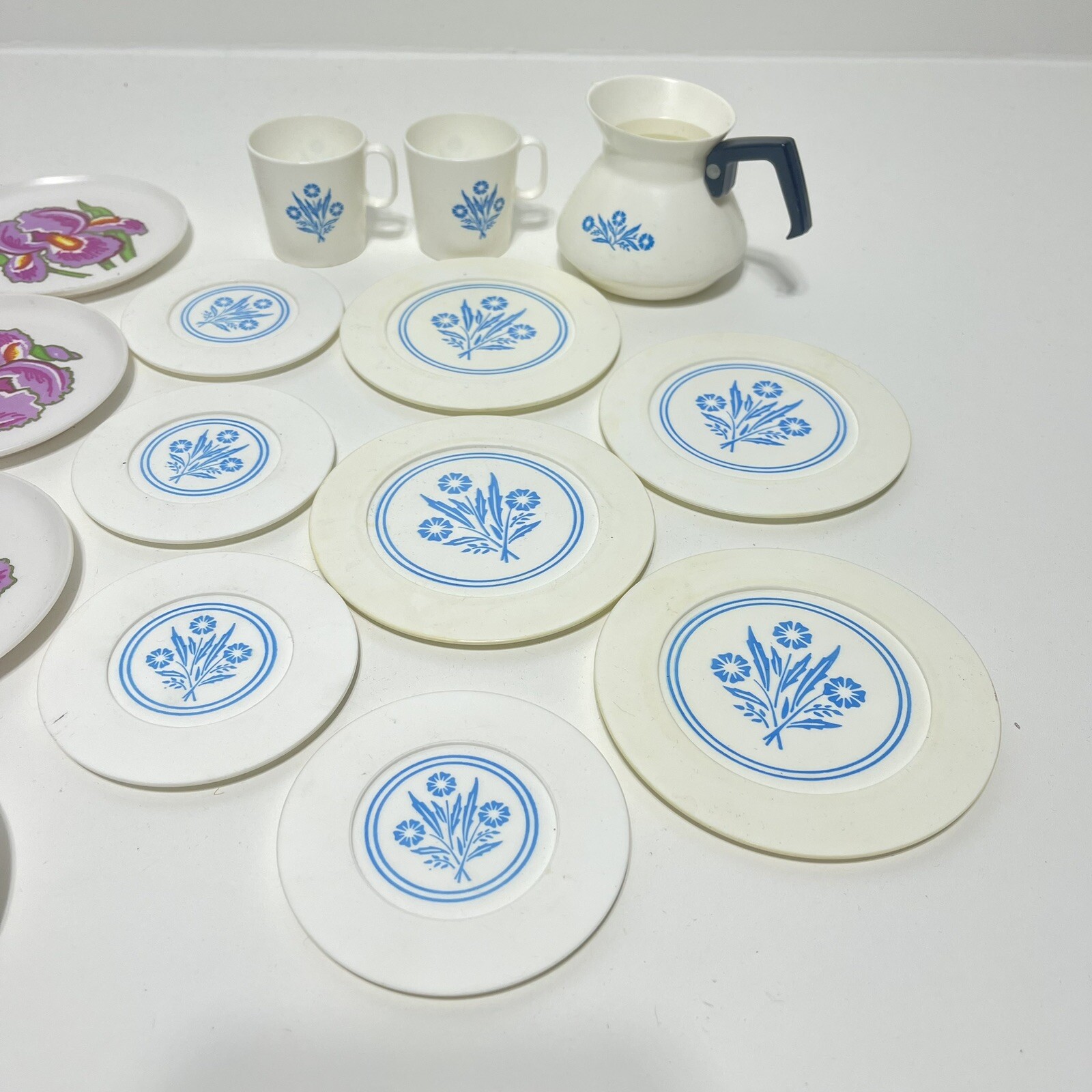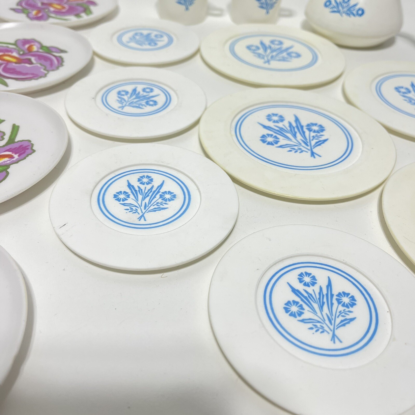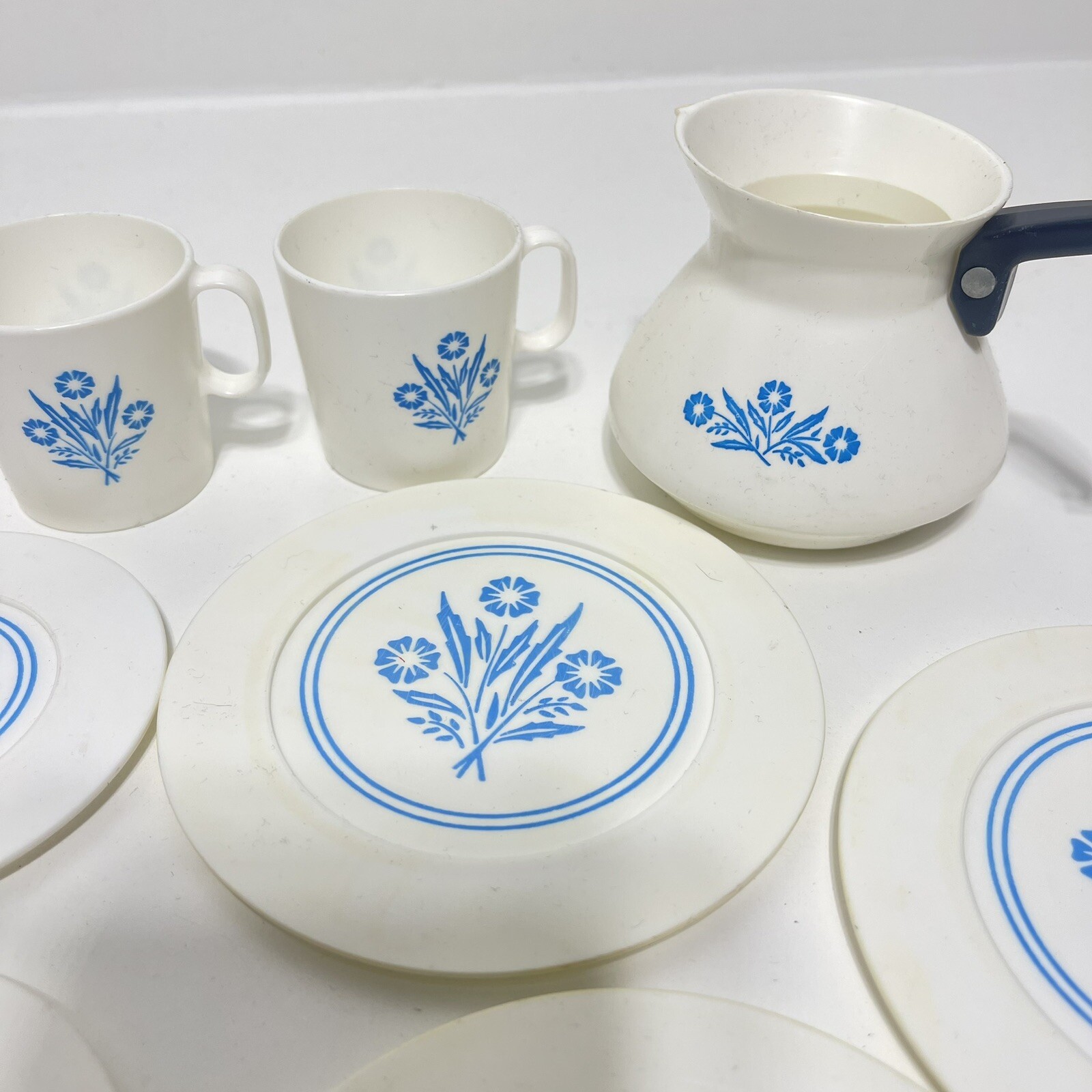 Vtg 11 Pc Chilton Corning Ware BLUE CORNFLOWER Plastic Toy Dishes Kent 8 Pc