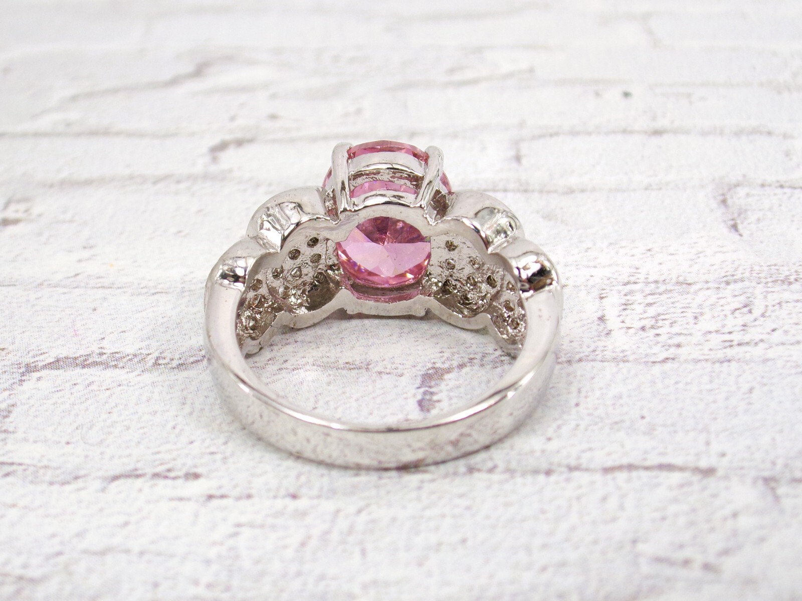 как выглядит Pink oval cubic zirconia ring with round clear cz stones on each side Size 8 фото