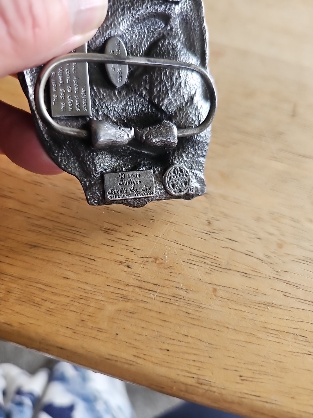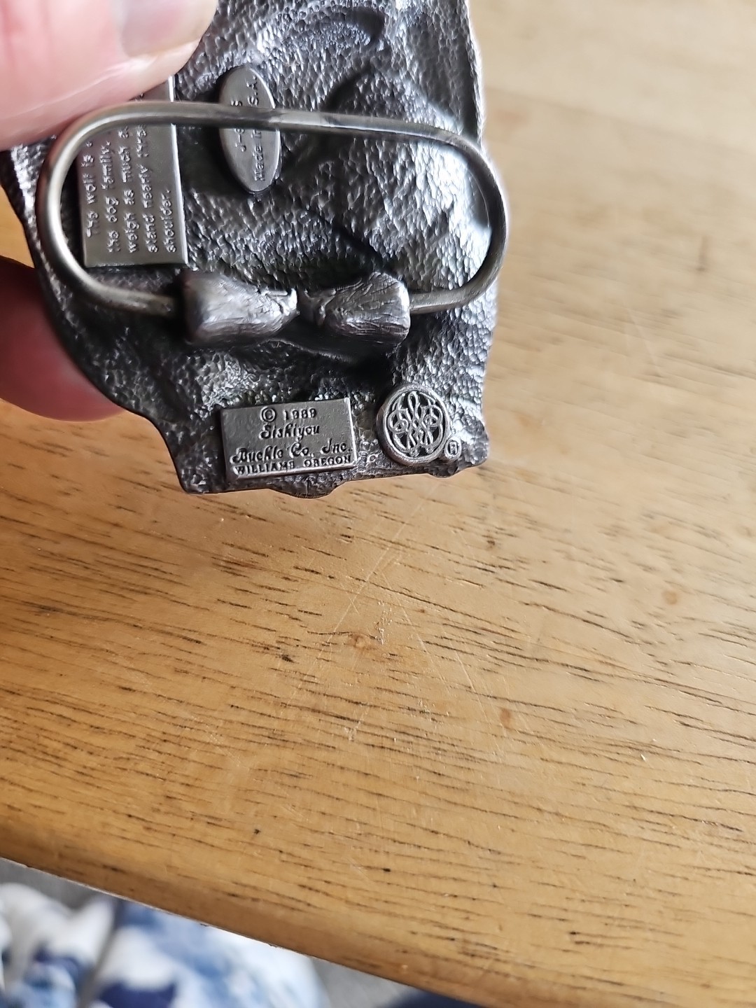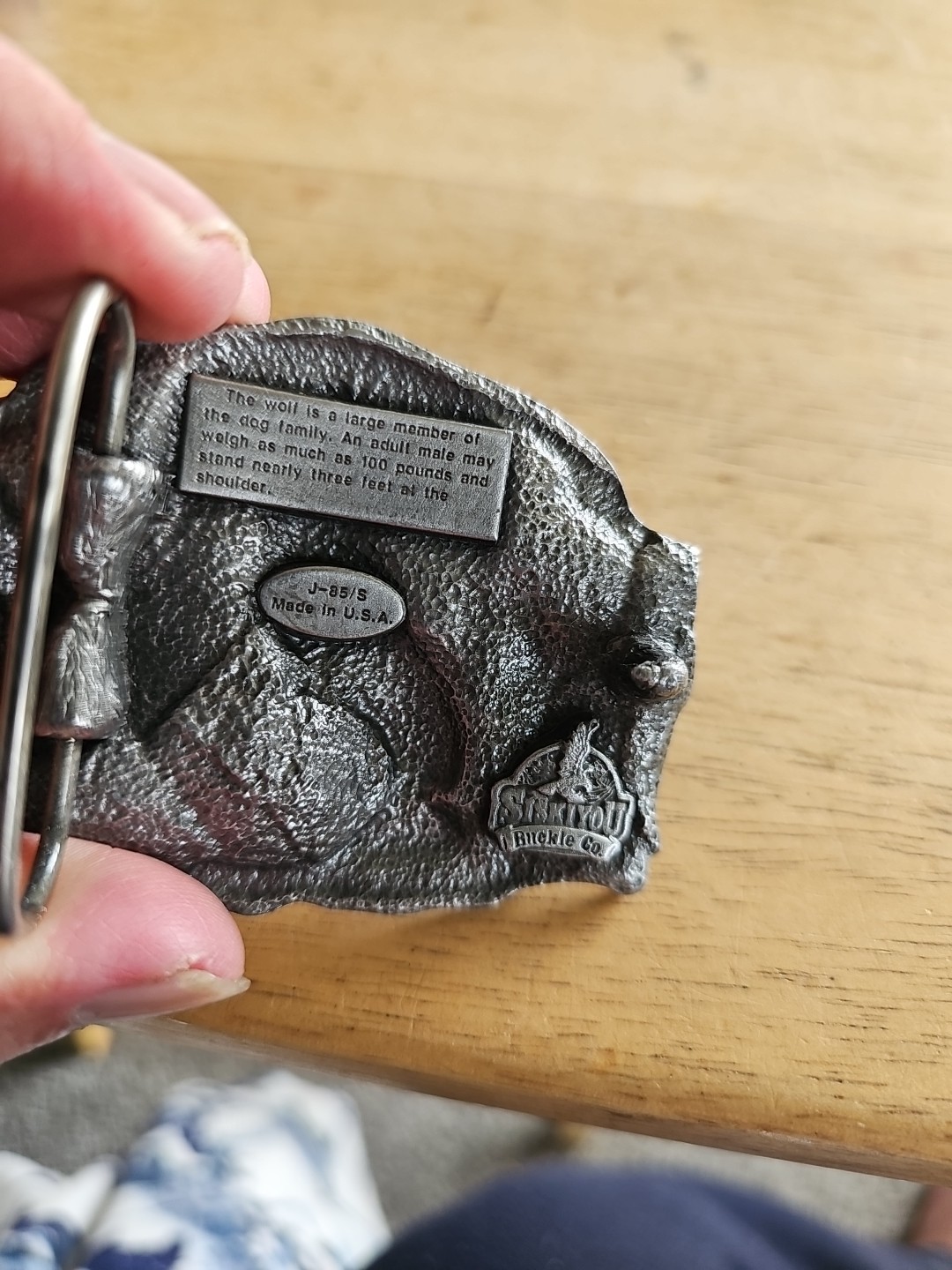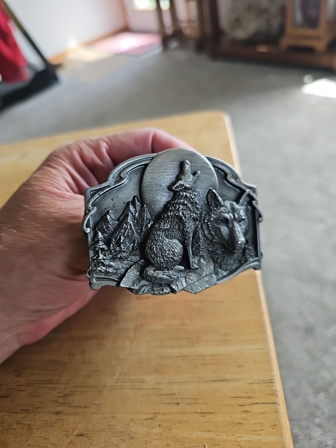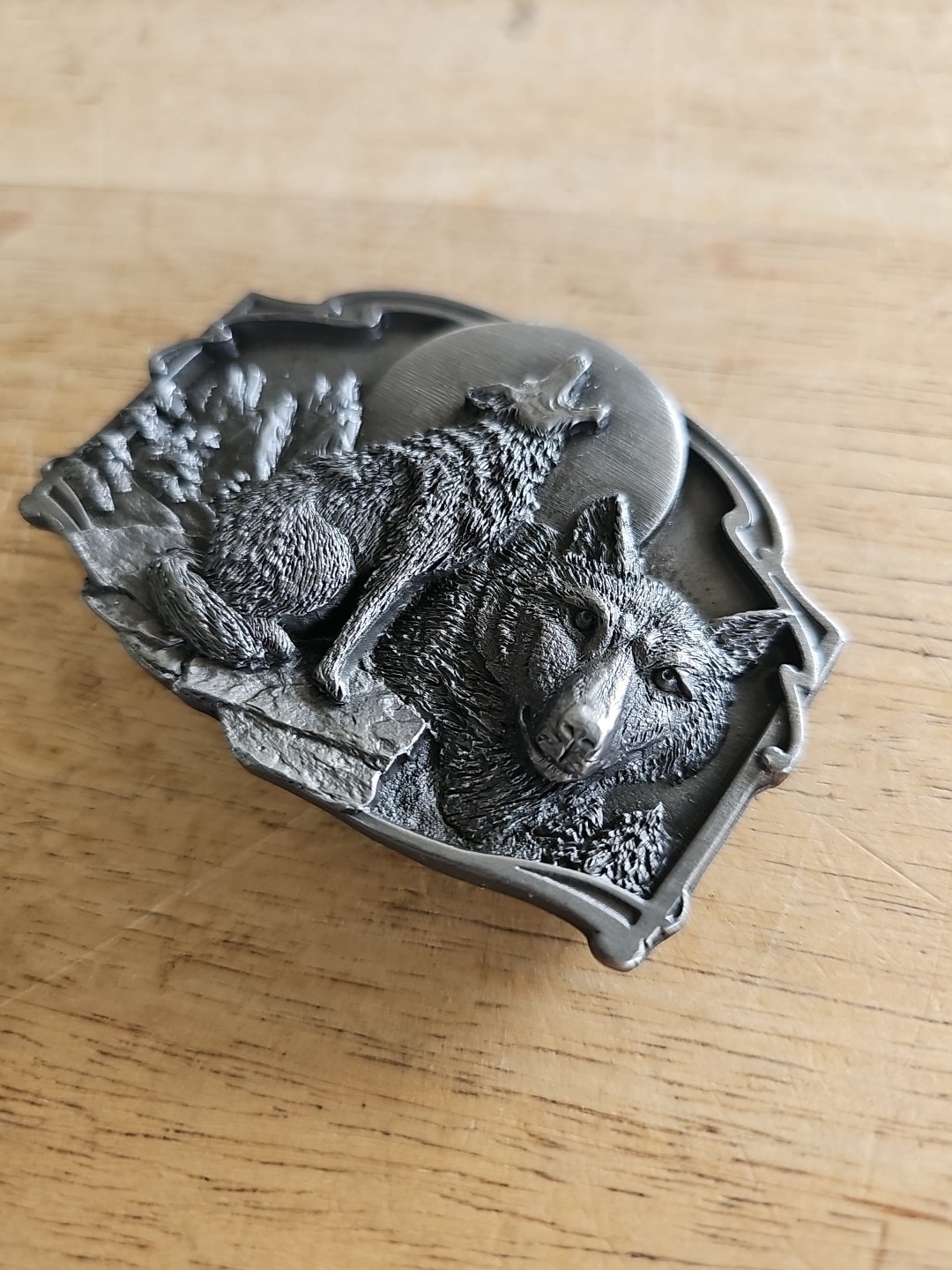 как выглядит Vtg Siskiyou Belt Buckle Howling Wolf at Moon Western 1989 Big Cowboy Rodeo 3.25 фото