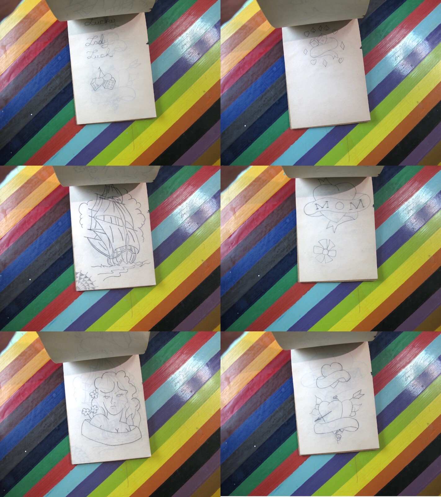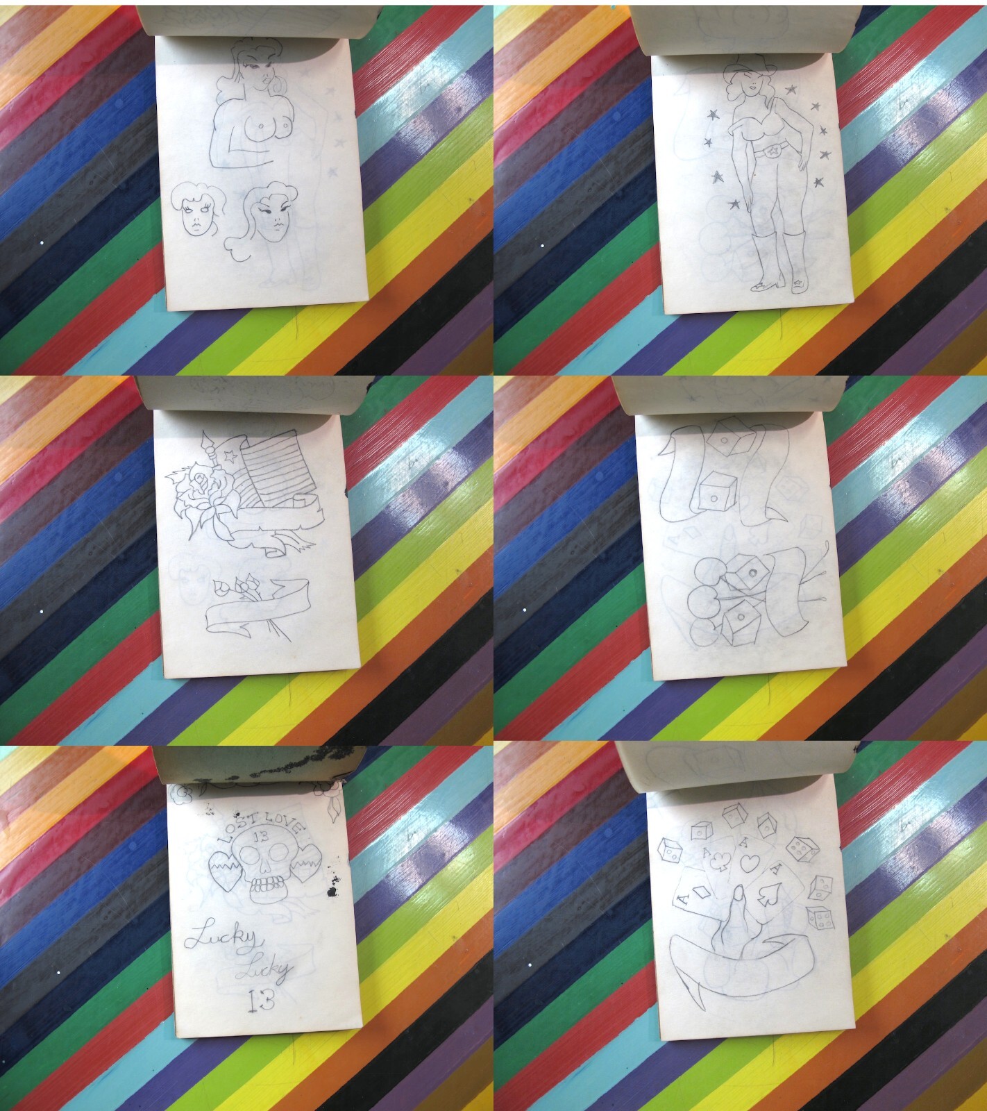 vtg 1950s - 1970s Tattoo stencil flash notebook sketchbook unknown artist