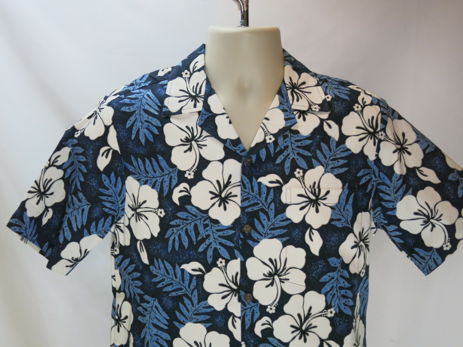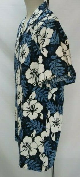 Vintage Men's Hawaiian Shirt by Hula Girl Size S Blue white Floral SS Button EVC