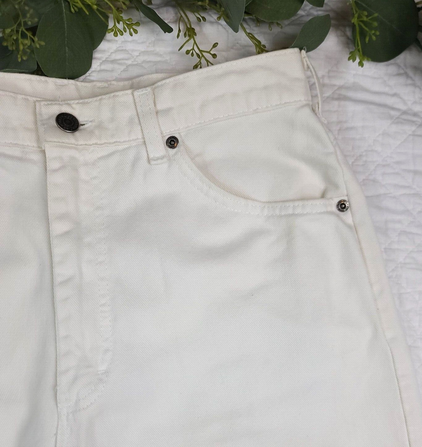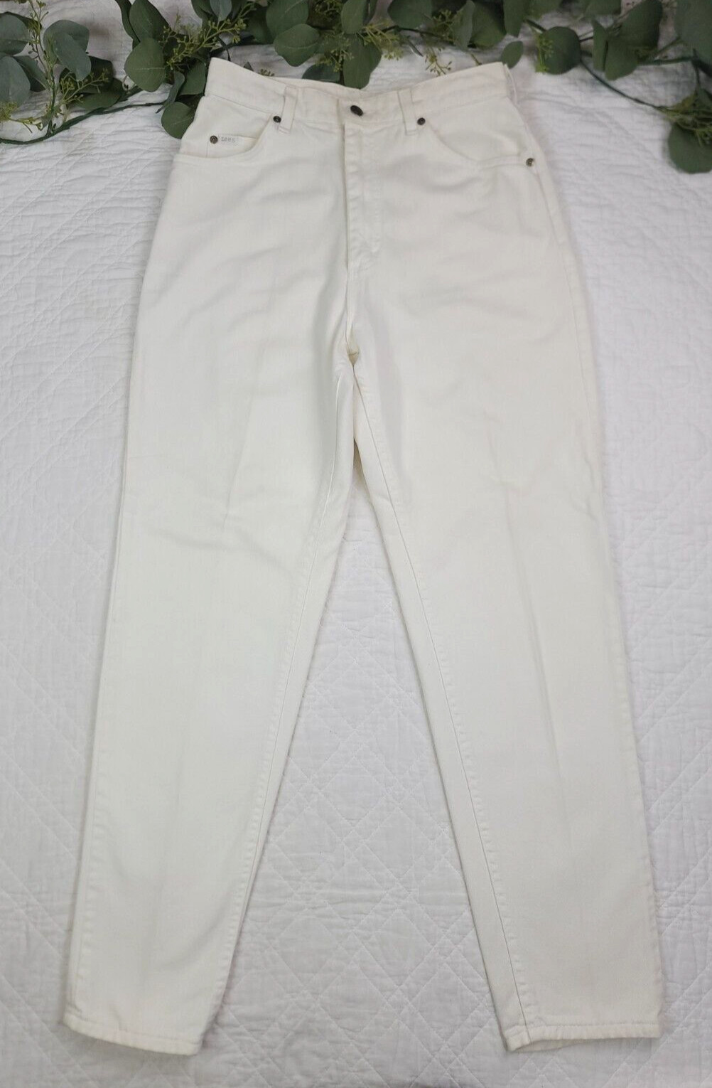 как выглядит VTG Lee Womens White Tapered High Rise Jeans Size 12 Med Made in USA фото