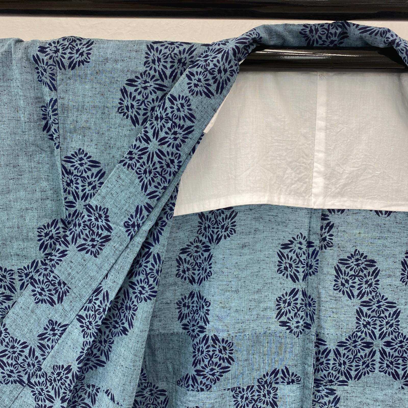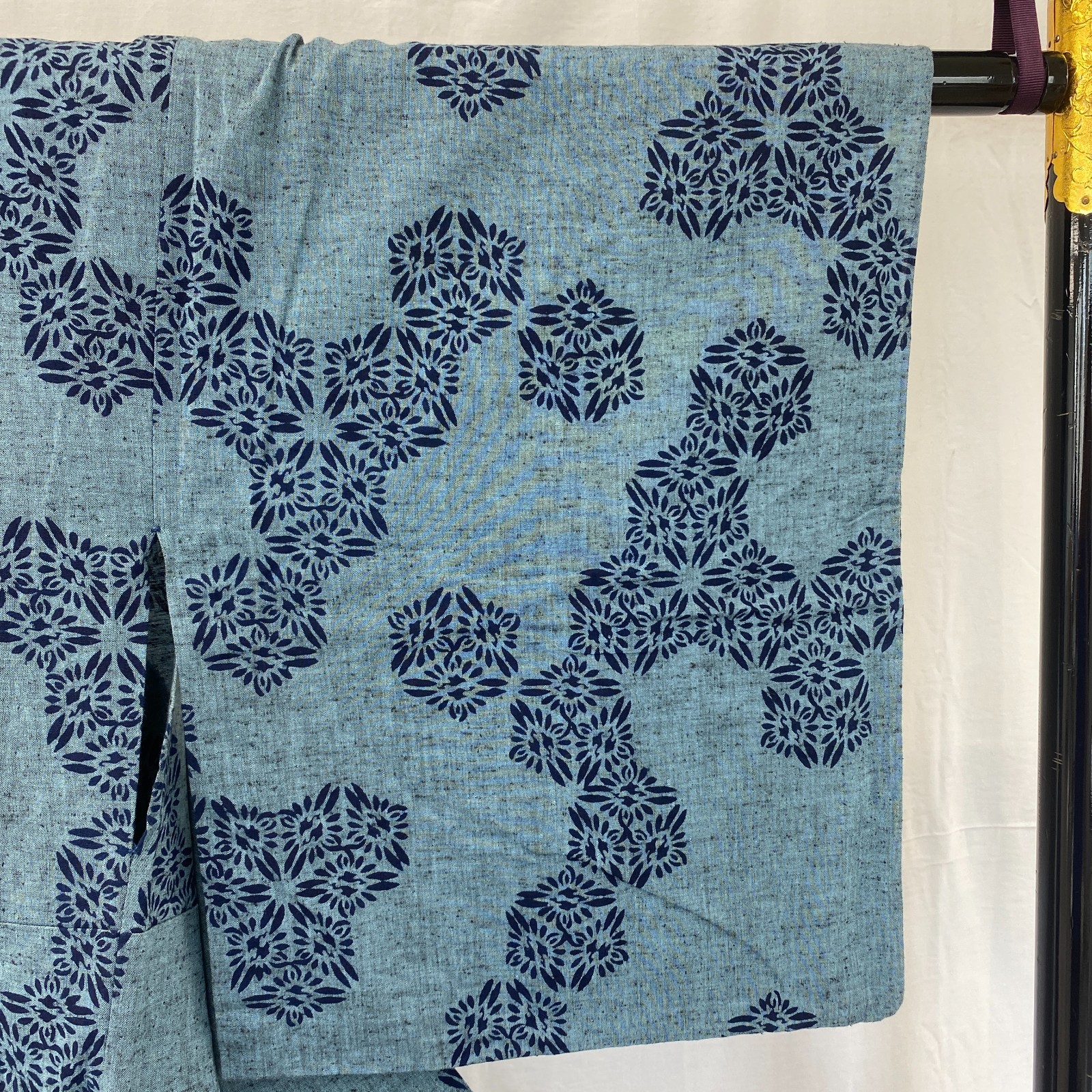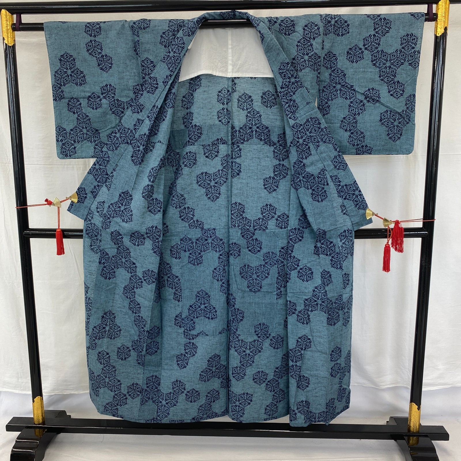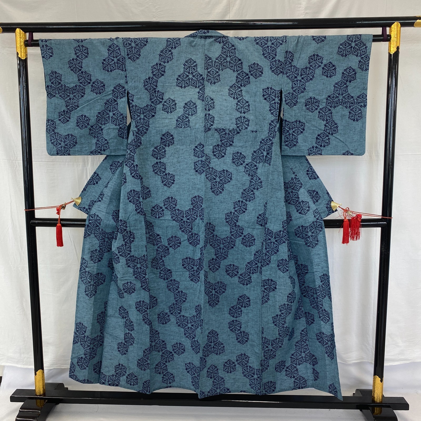 Japanese Vintage Kimono Yukata Blue No Lining Traditional Authentic Length 58 in