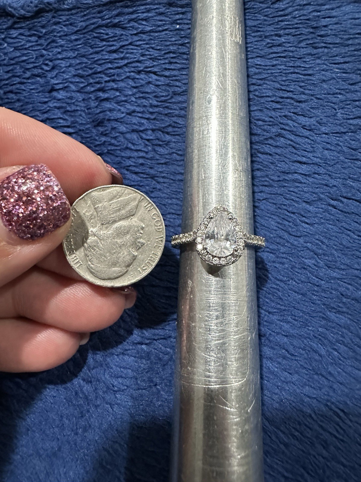 как выглядит Sterling Silver 925 Pear Shaped Halo Style Cubic Zirconia Engagement Ring, Sz 6 фото