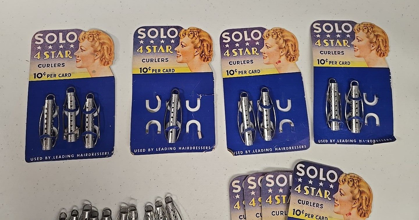 как выглядит Solo 4 Star Curlers Vintage 1940s Aluminum 2 Inch Lot of 28 Read фото