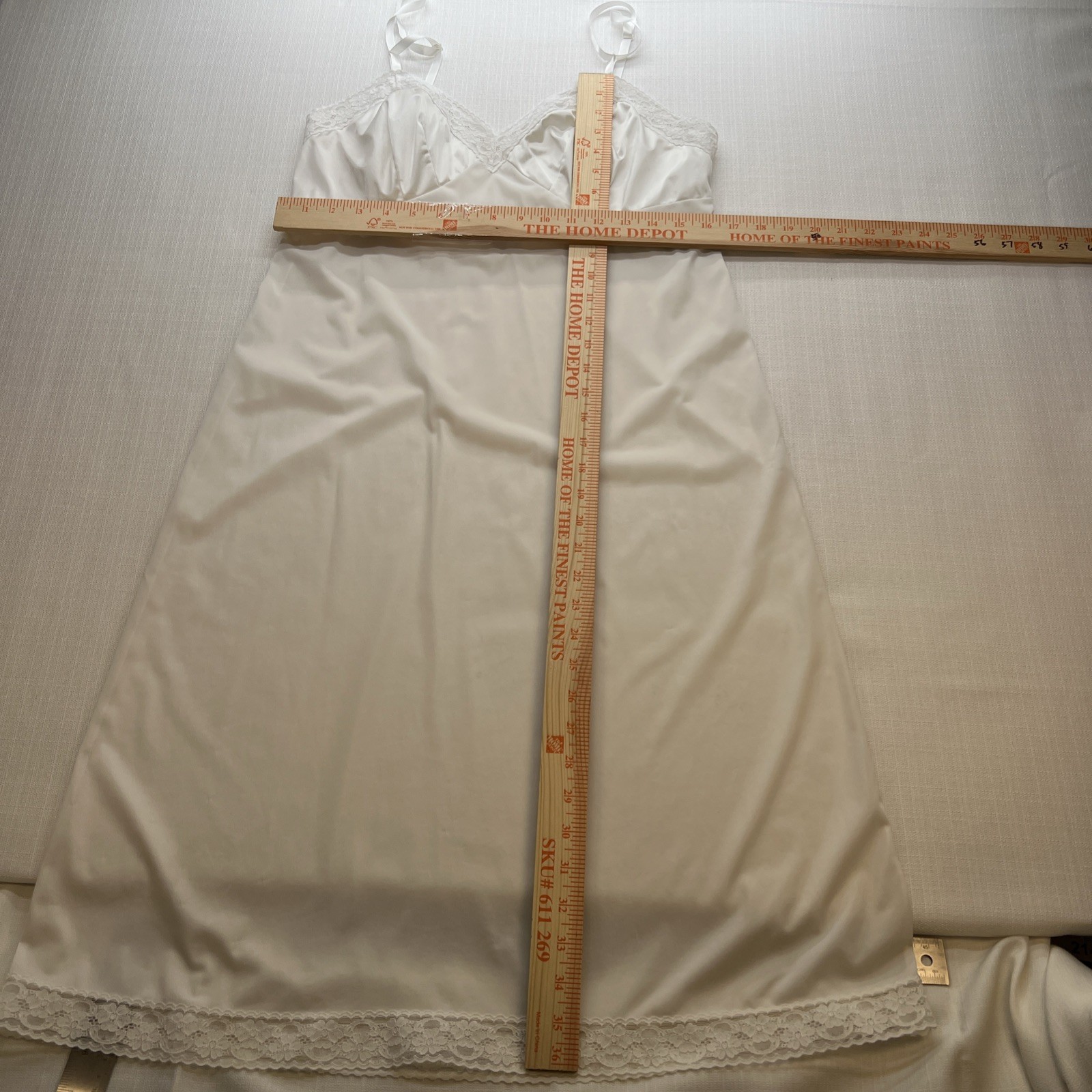 как выглядит Vintage Vanity Fair Ivory Nylon Lace Trim Slip Dress Lingerie 38 Made In USA фото