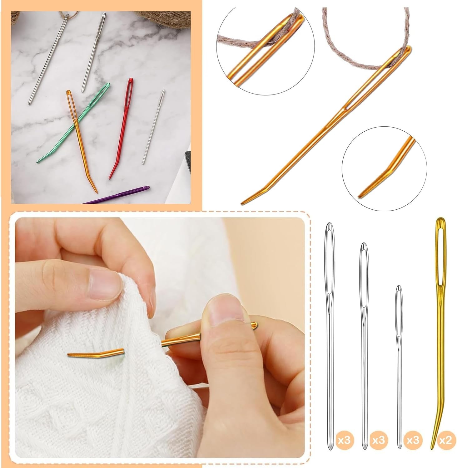 • 11pcs Large Eye Stainless Steel Sewing Needles Set for Easy Crafting Repairs