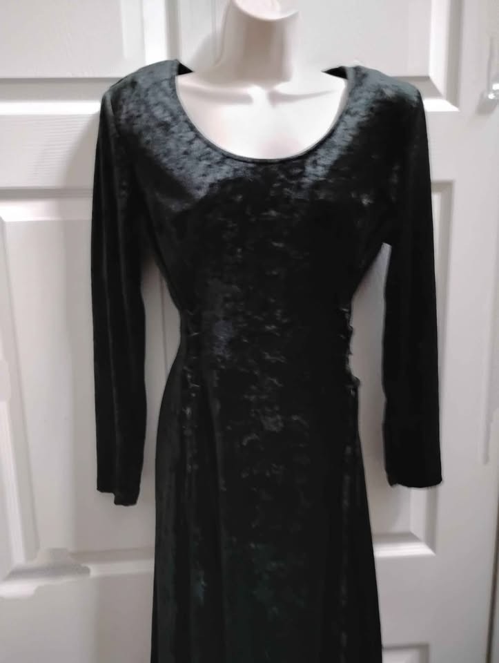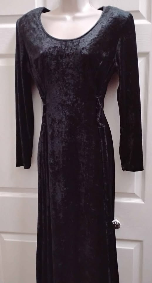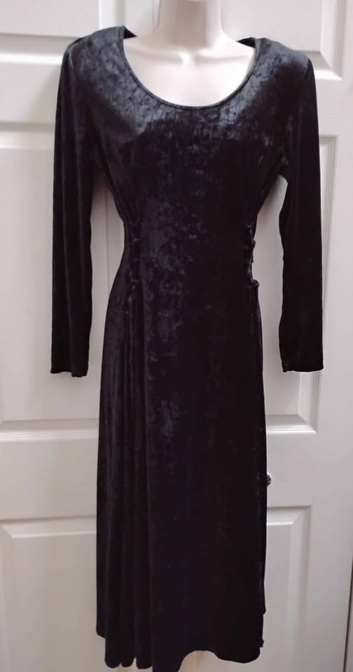 как выглядит Jamie Brooke Women s Medium Vintage Long Dress Black Crush Velvet Lace Up Sides фото