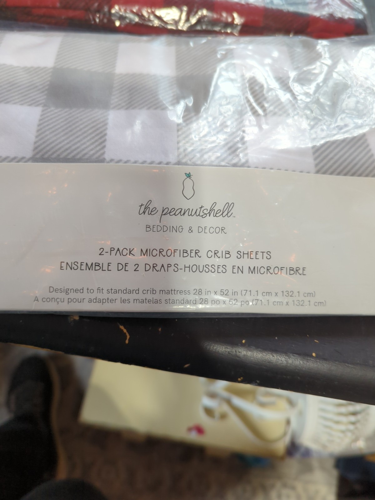 The Peanutshell Buffalo Plaid 2Pac Microfiber Crib Sheets Red/Black Gray/White