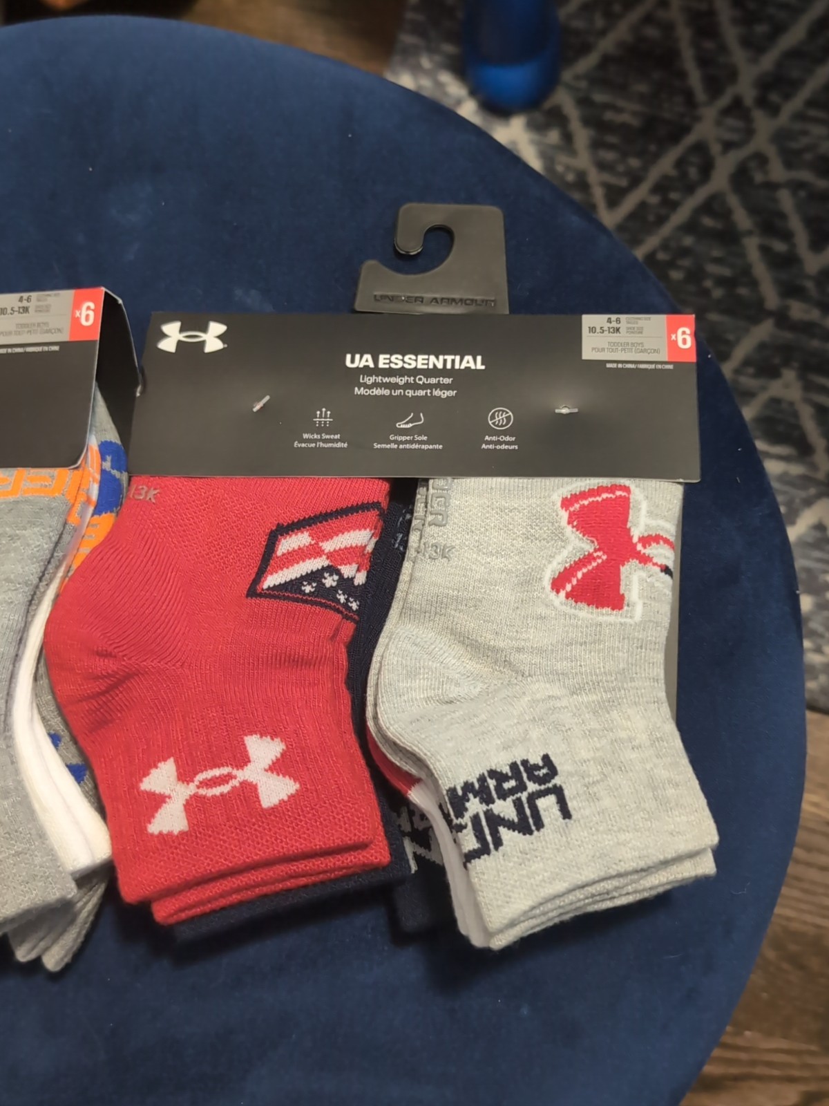 как выглядит 2 x UNDER ARMOUR ESSENTIAL Gripper 12 SOCKS Lightweight Quarter Size 4-6 Toddler фото