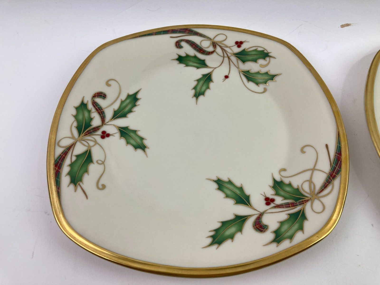 как выглядит 4 Lenox Holiday Nouveau Square Salad Plate 8.75" Gold Trim NEW Original Sticker фото