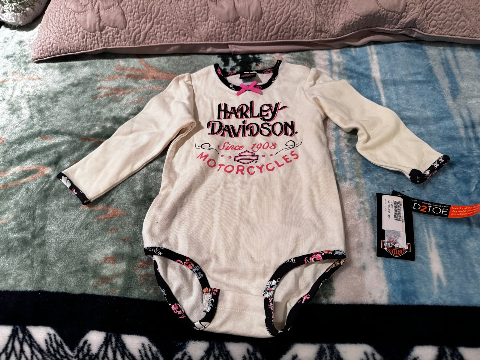 как выглядит Toddler Infant Girls Harley Davidson Motorcycles One Piece L/S Sz 12m Month NWT фото