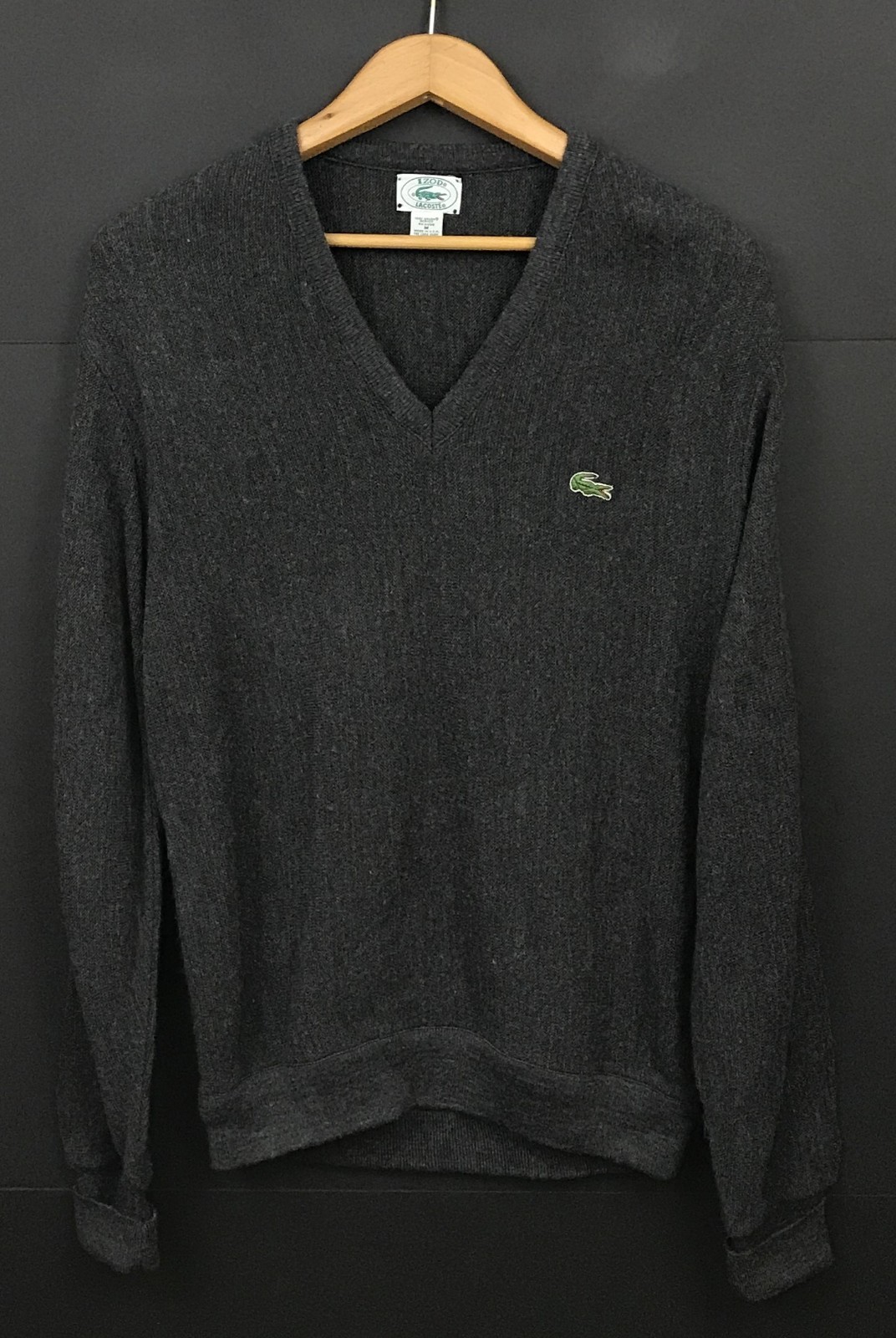 как выглядит Vintage Izod Lacoste Mens Gray V-Neck Sweater sz M Made in USA фото