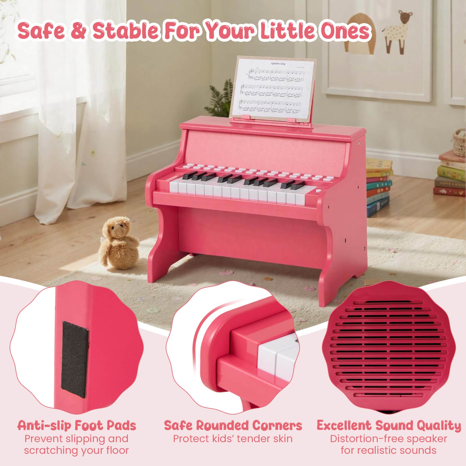 25 Keys Digital Piano w/Music Stand, Teaching Mode, Lighted Keys, 6 Instruments