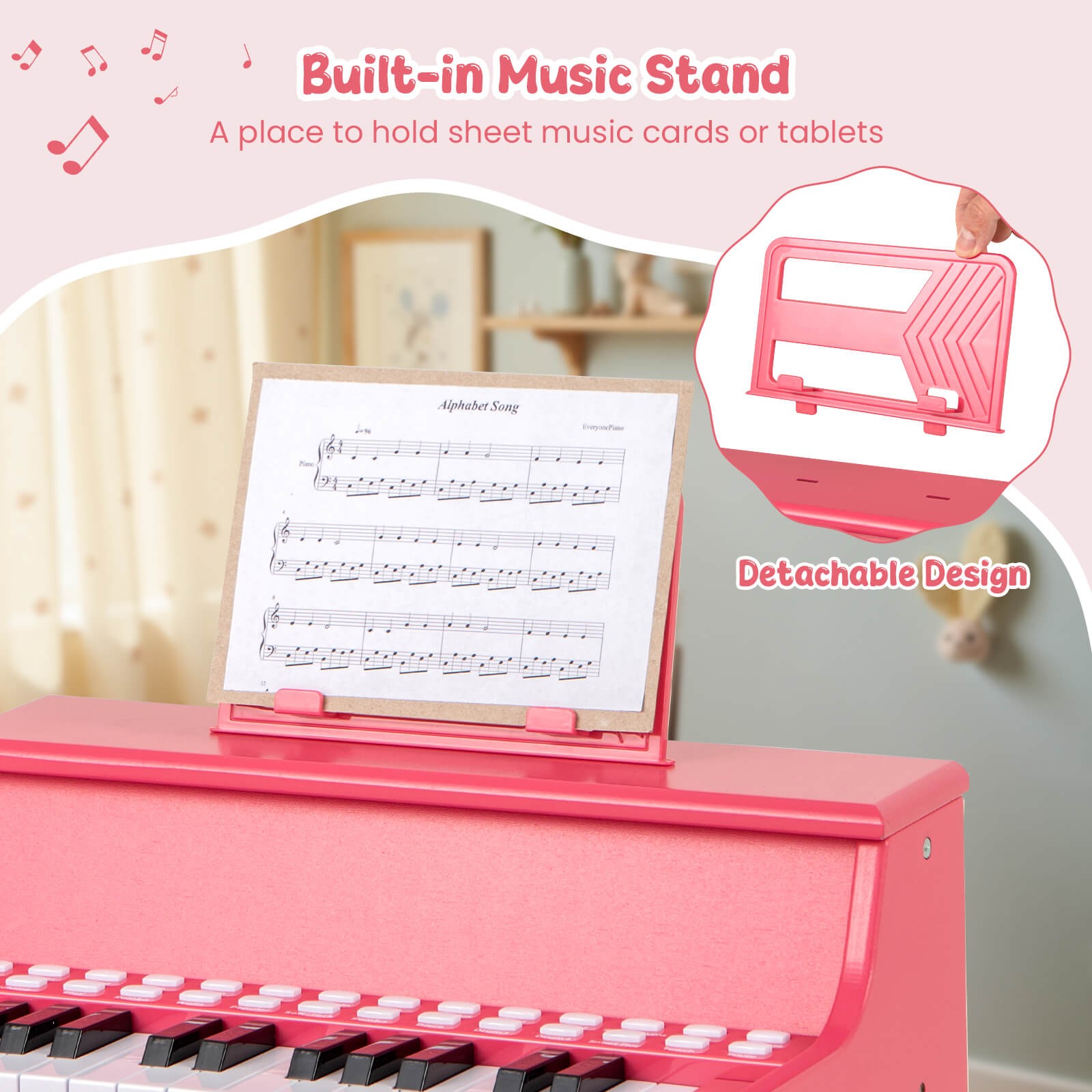 Set Includes: 1 x Kids Piano Keyboard, 1 x Music Stand, 1 x User Guide