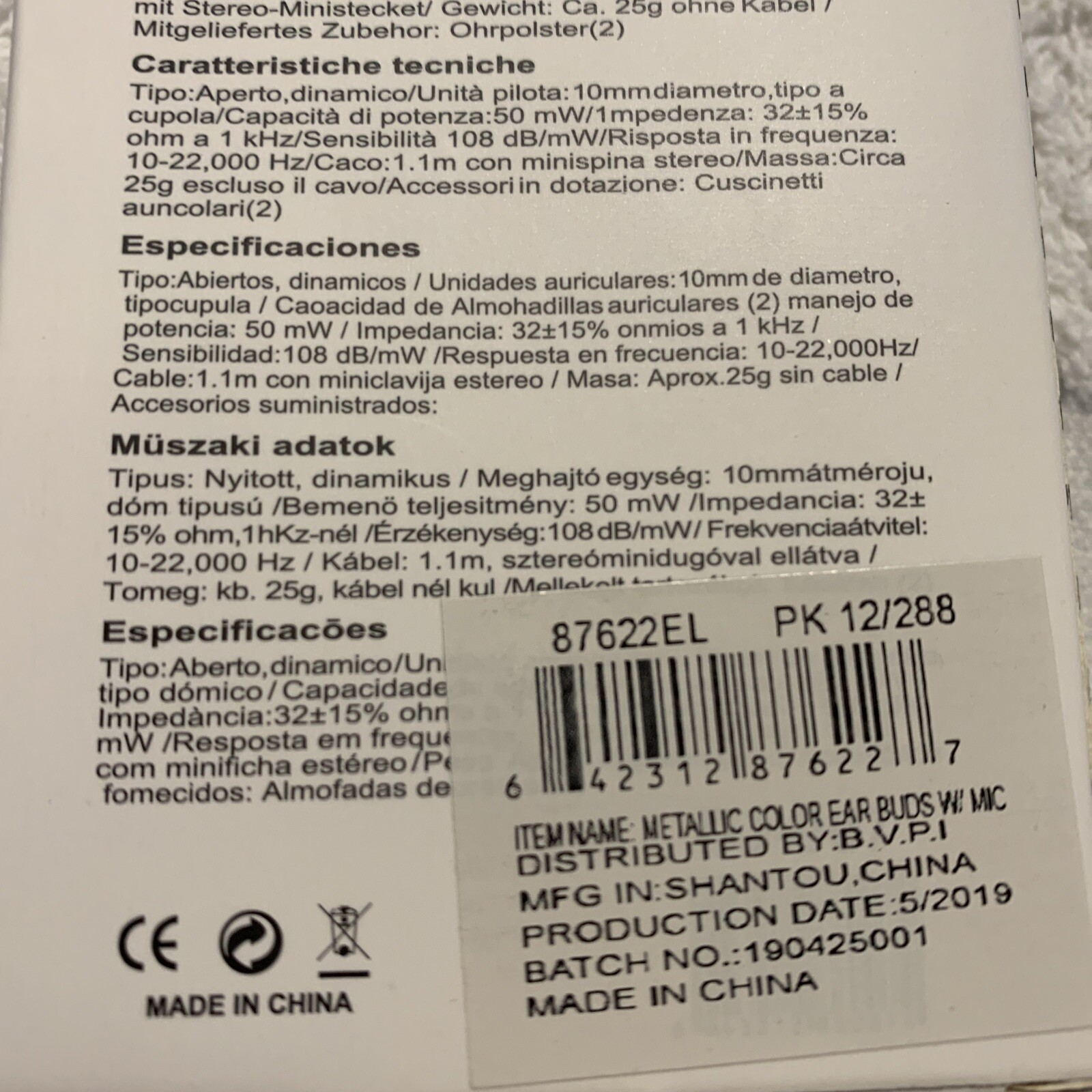 Тип: Earbud (In Ear)