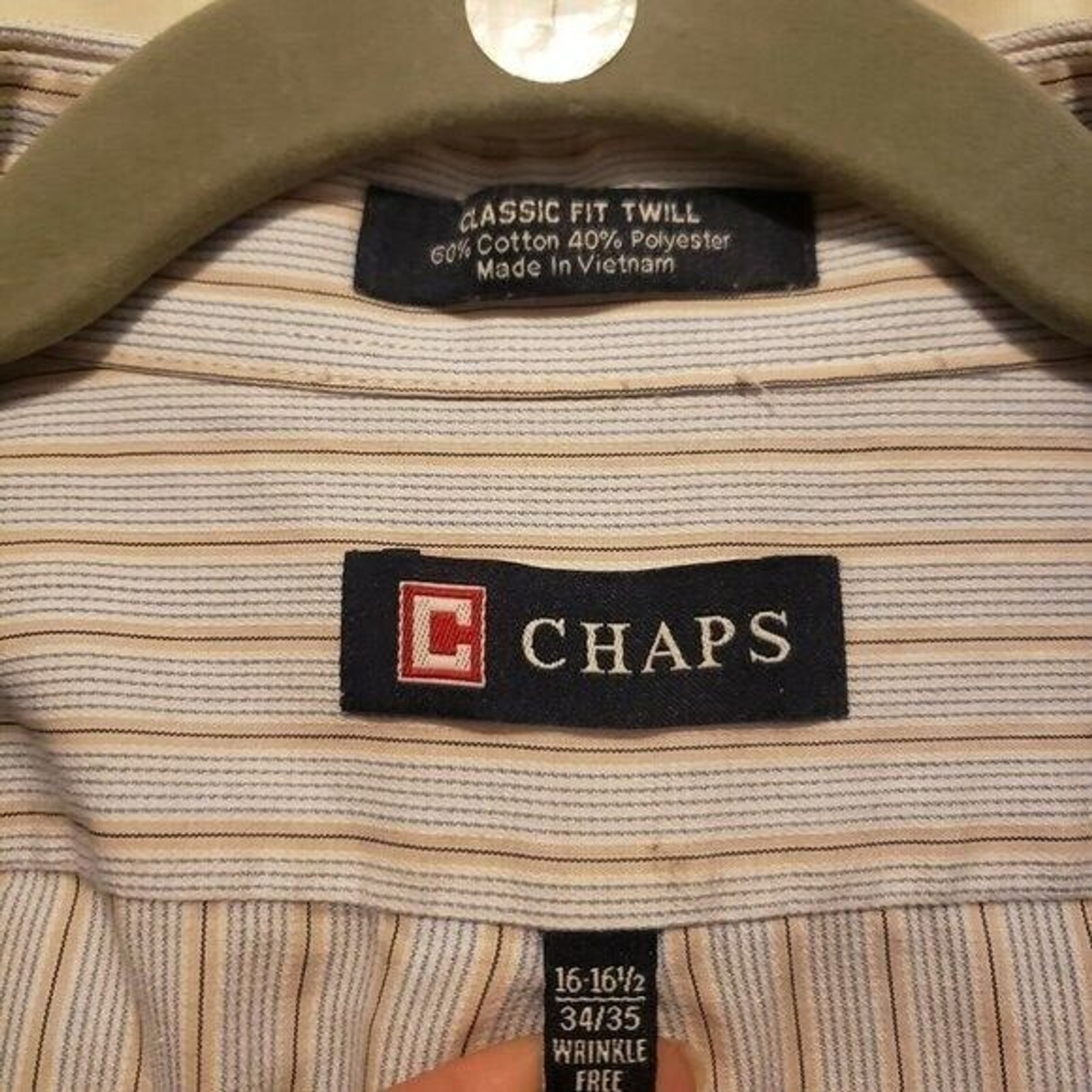 как выглядит CHAPS Mens Sz 16.5 Blue Tan Striped Long Sleeve Dress Shirt фото