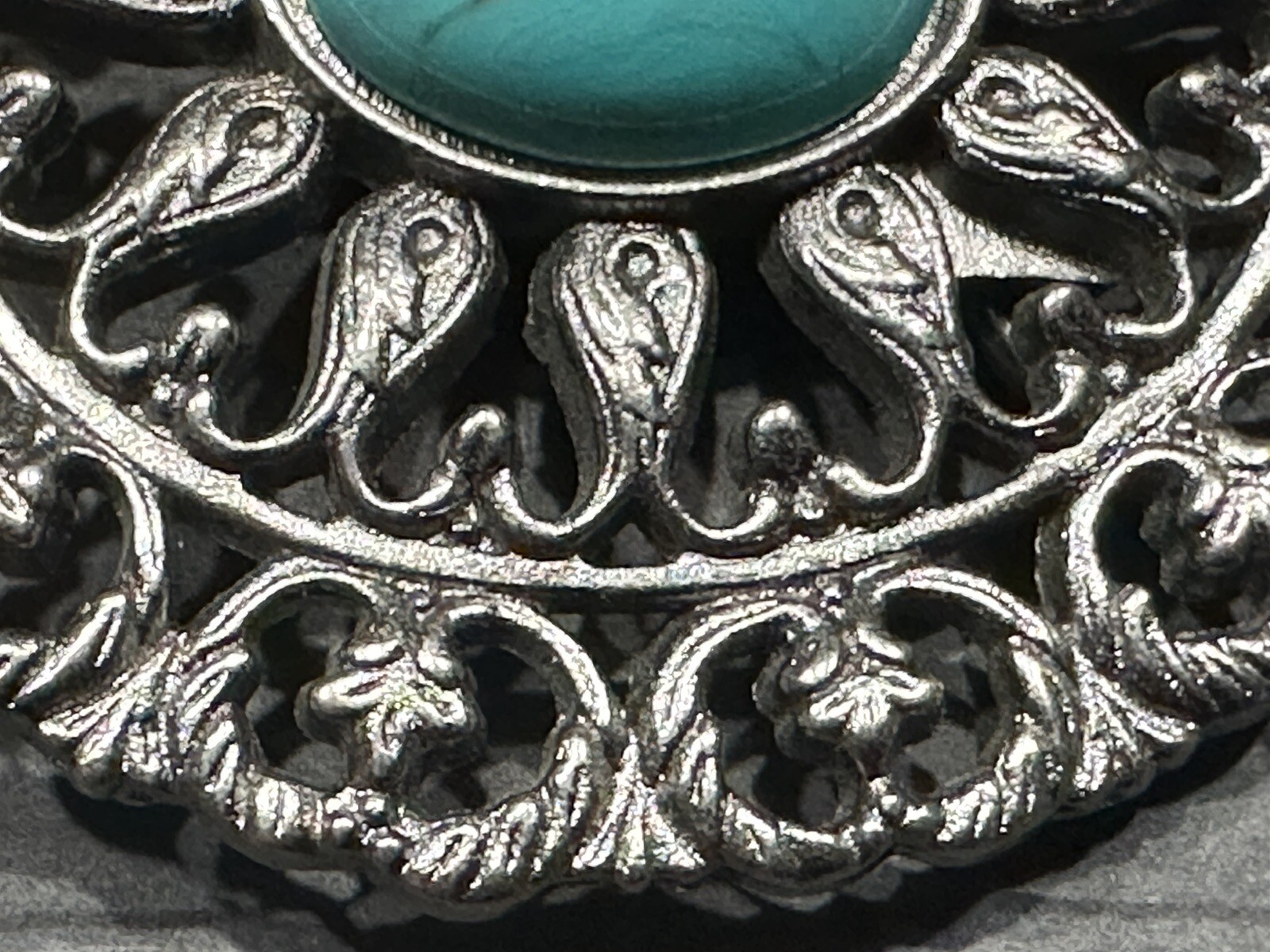 Turquoise Round Belt Buckle Silver Tone Metal - Southwestern Style - 3