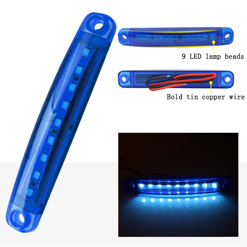 10PCS BLUE 12-24V universal 1Wx9 truck side light 3030 lamp beads 9led