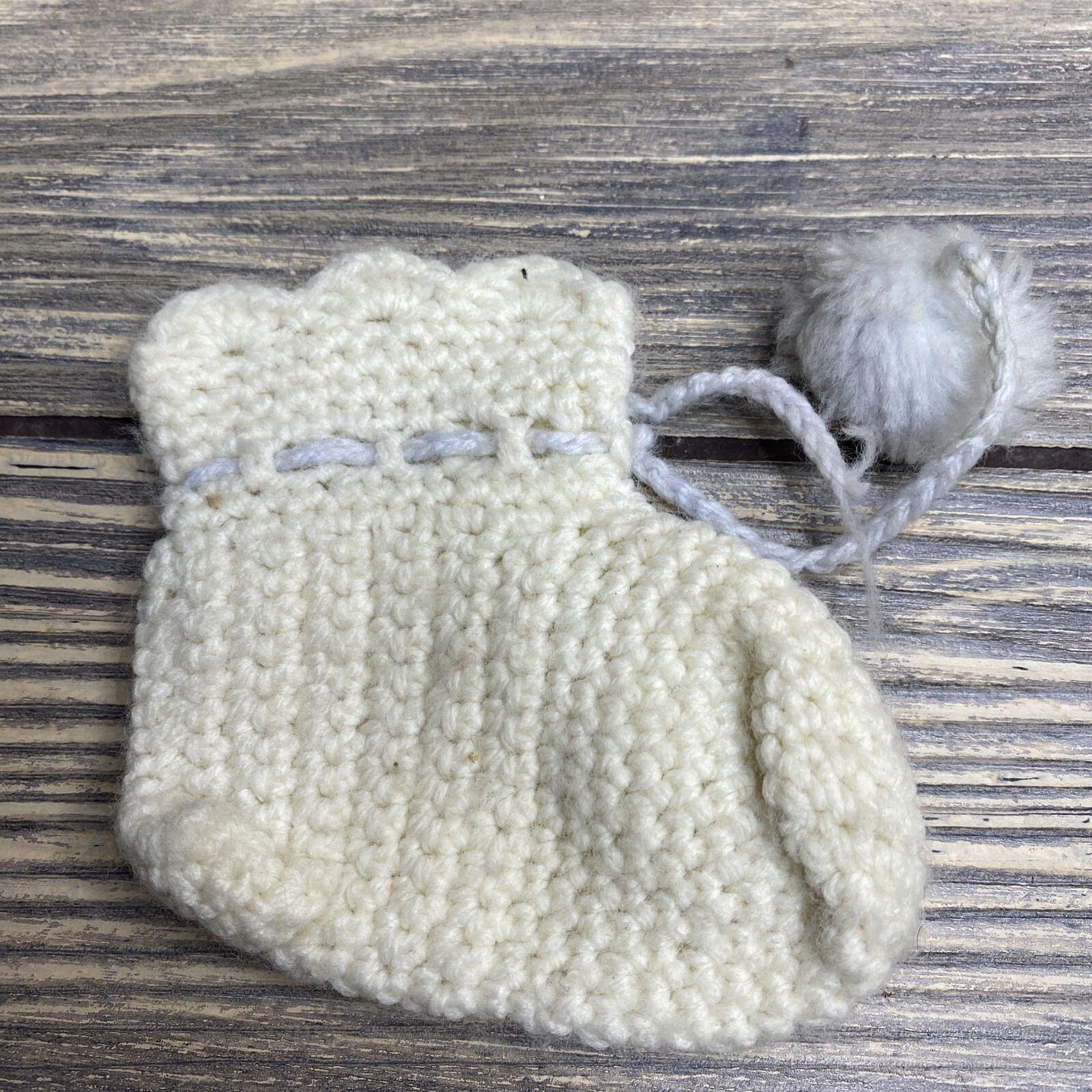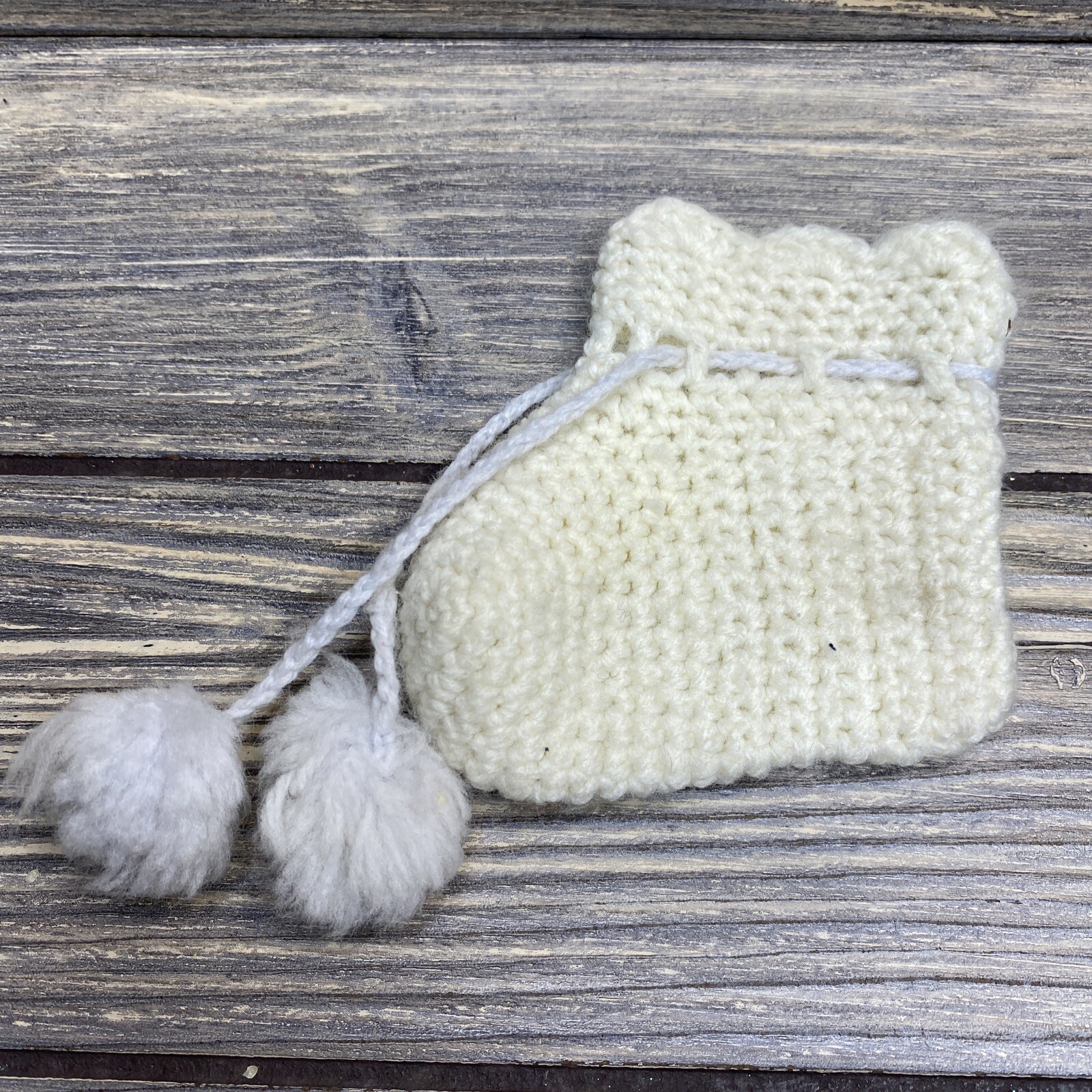 Vintage Handmade Crocheted Baby Booties White With Pompom Ties