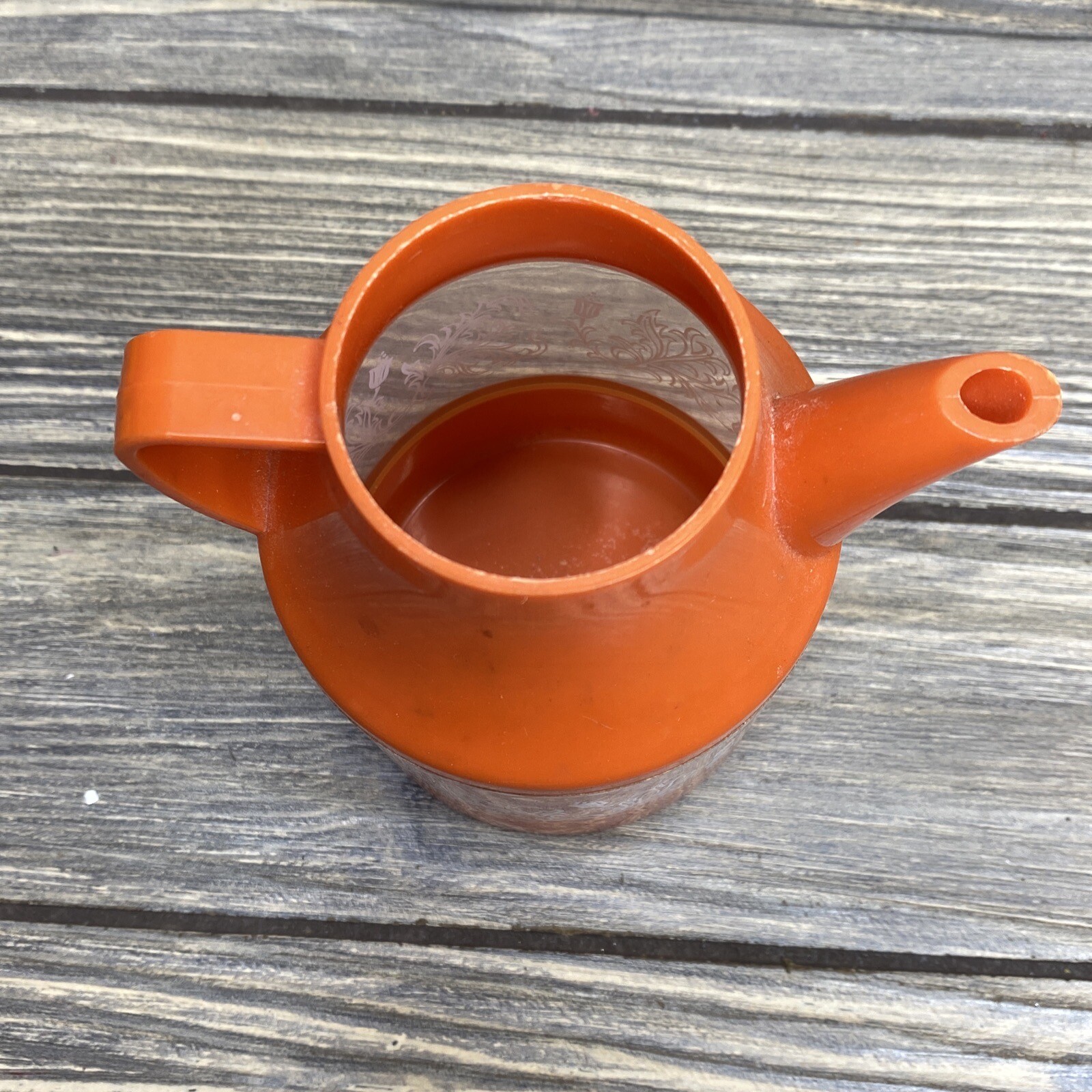 Vtg Plastic Orange Coffee Tea Kettle Pretend Play Kitchen Made in Hong Kong 4.5