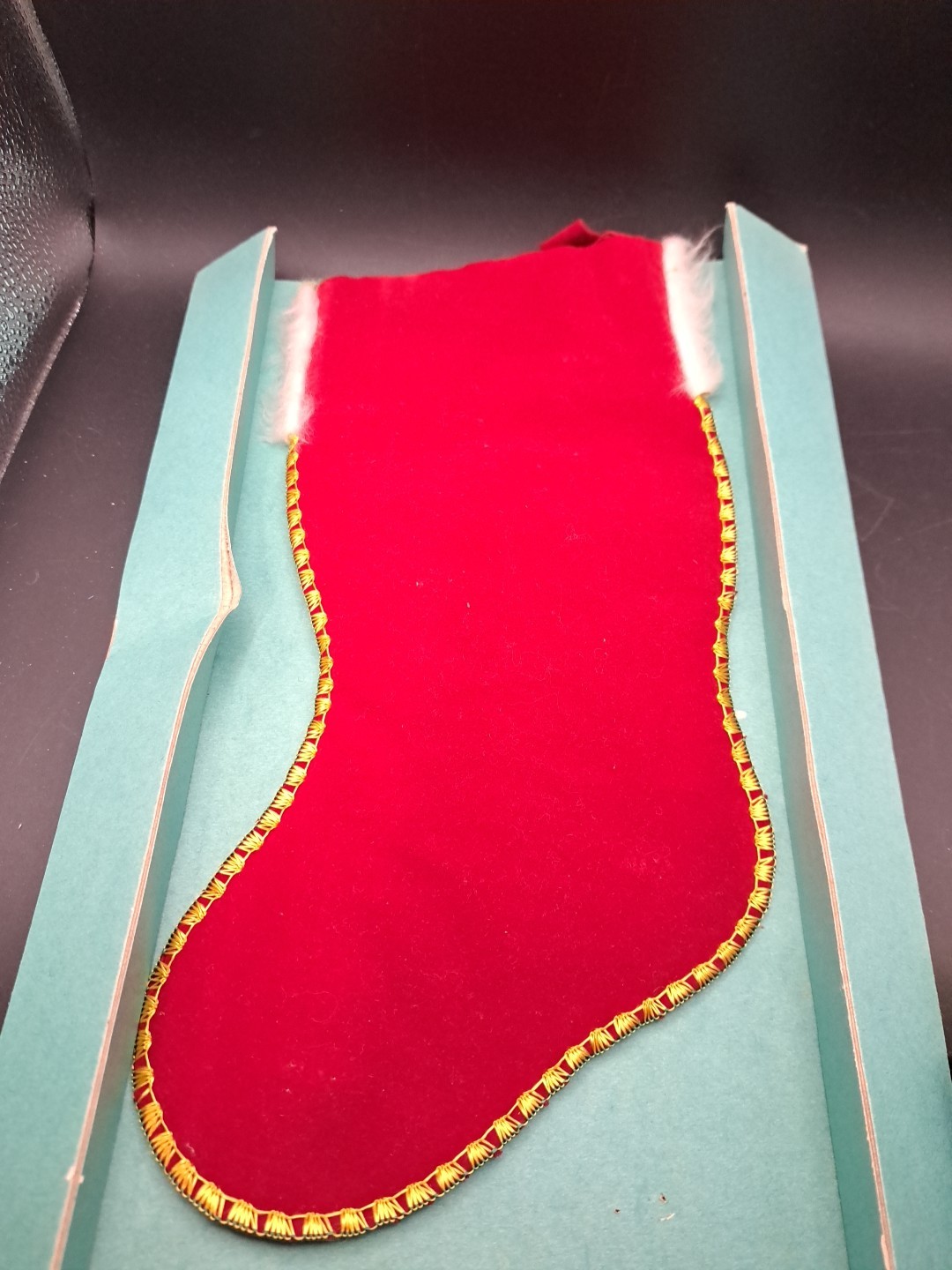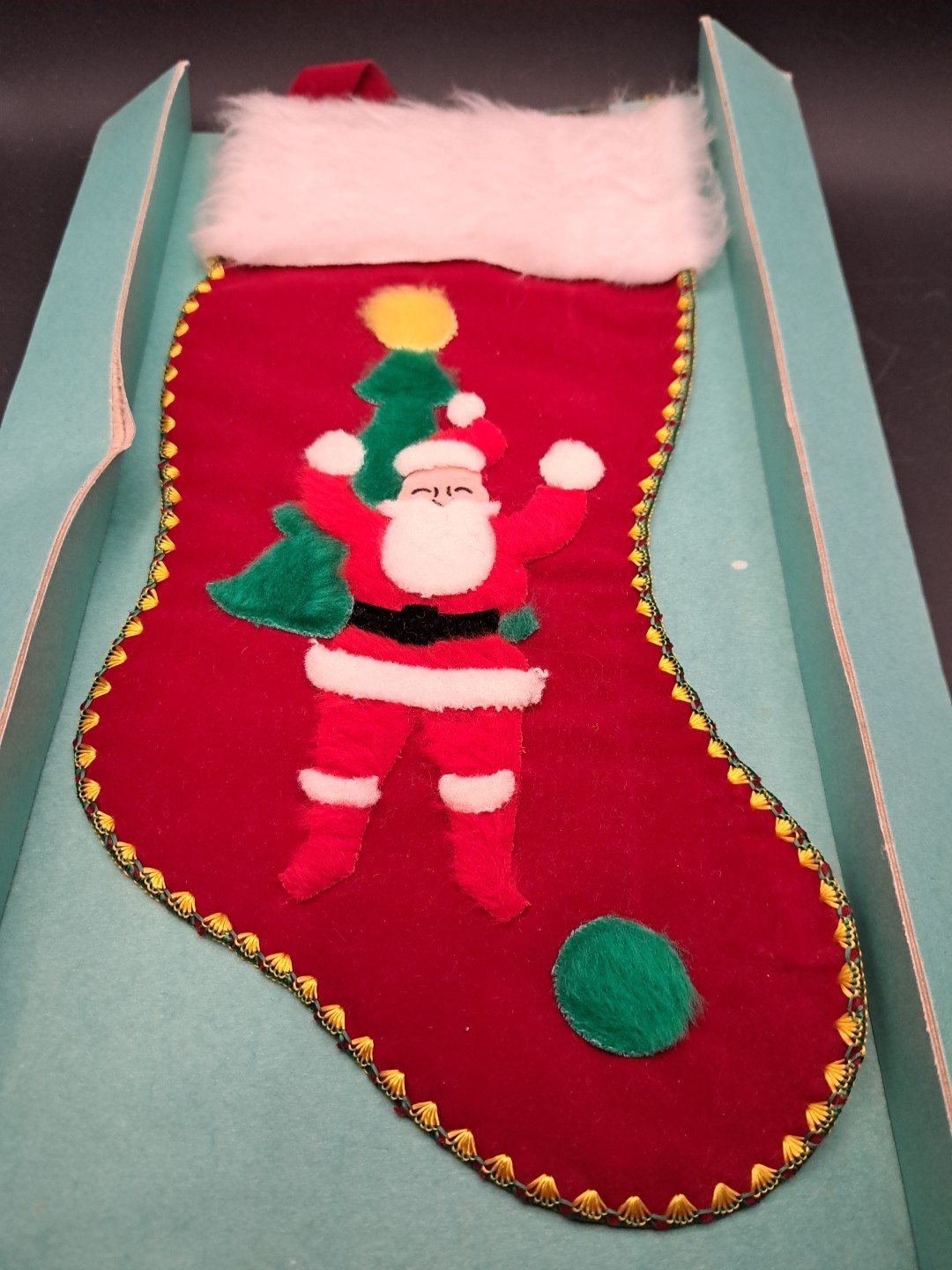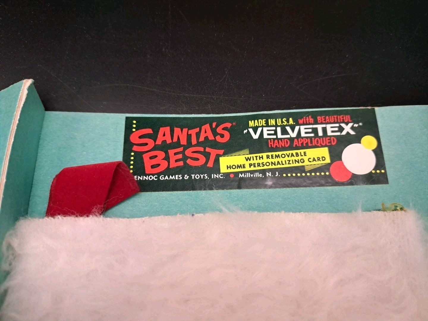 • Vintage Santas Best Velvet Christmas Stocking Appliqued Original Packaging USA