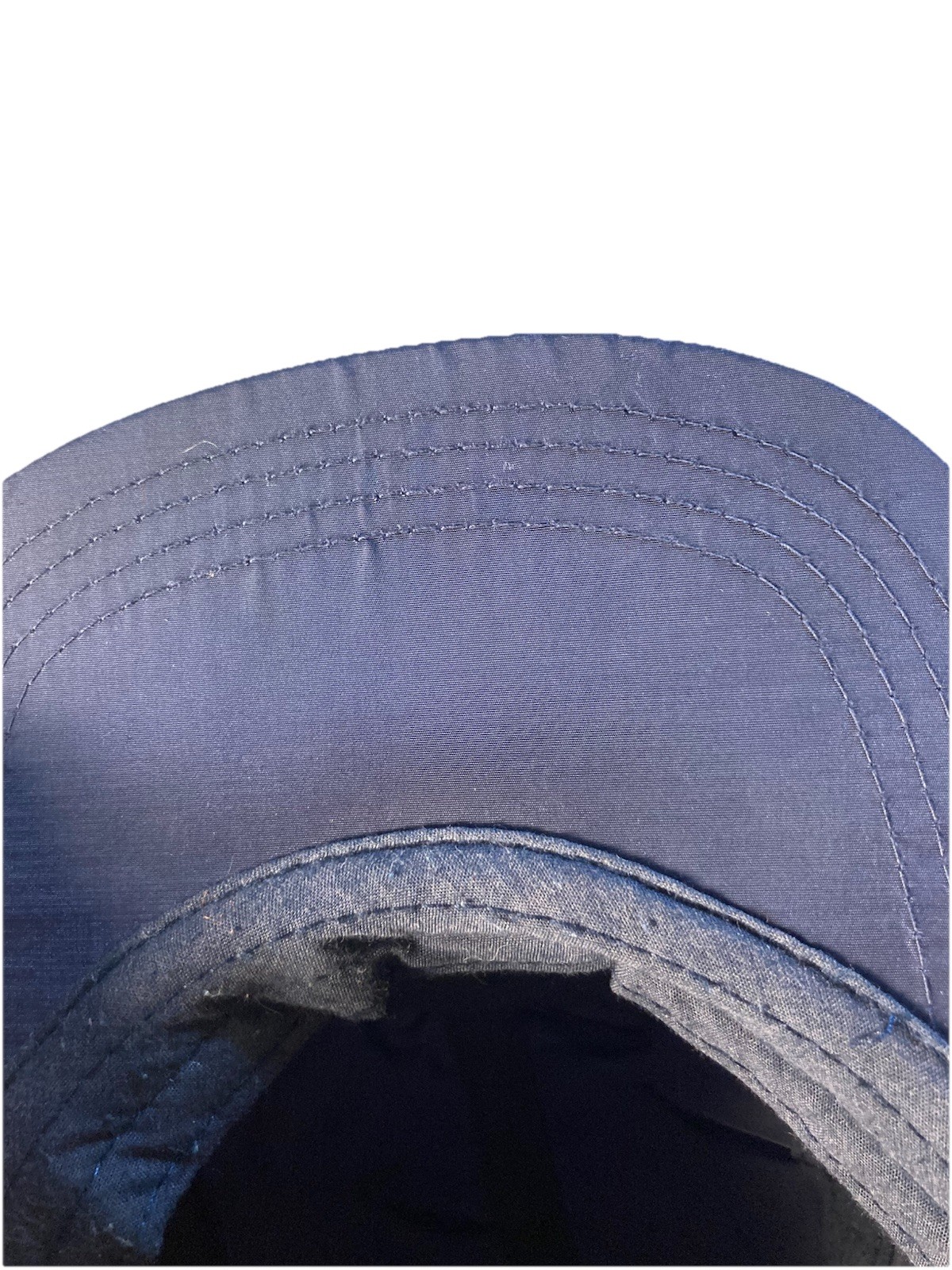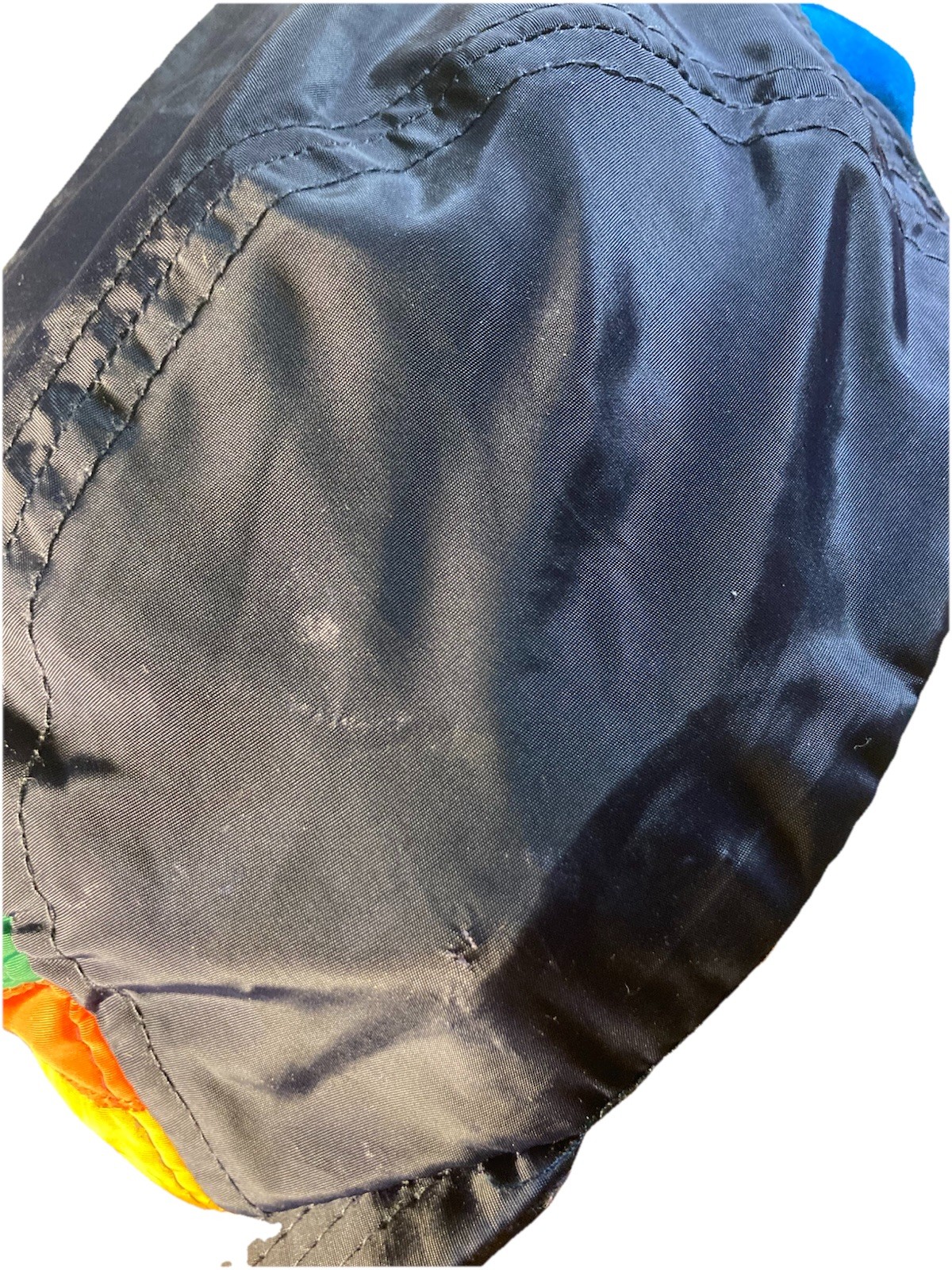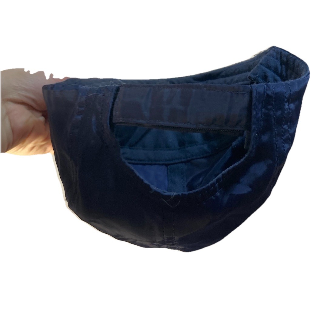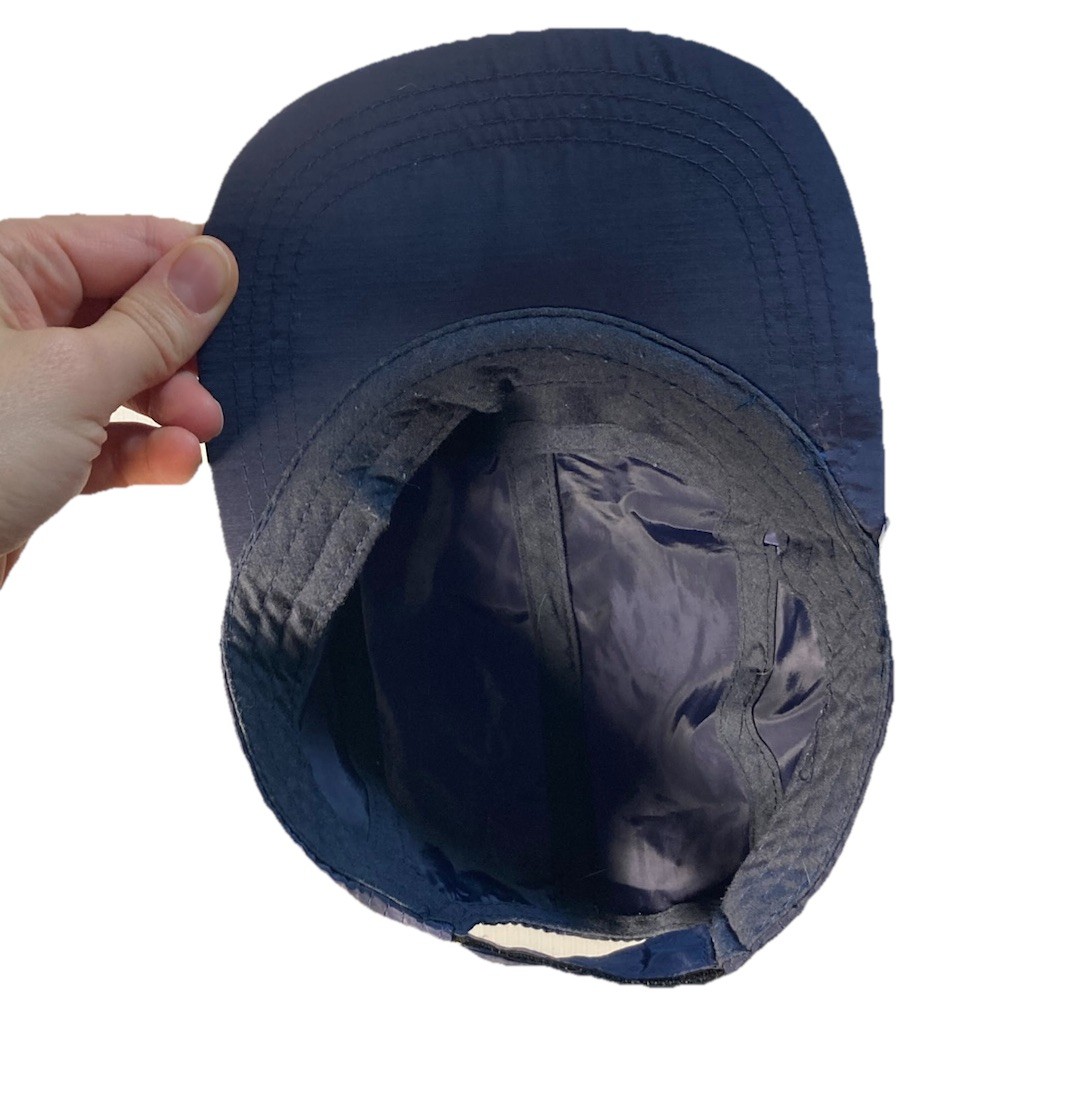 Kids Puffer Cap Navy Blue Nylon Hat Orange Stripes No Brand Preowned Retro 80s