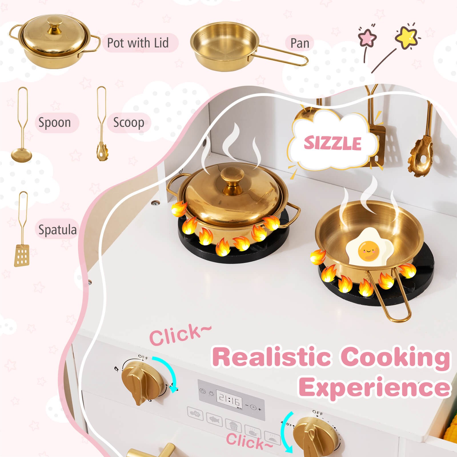 Set Includes: 1 × Wooden Play Kitchen, 1 × Pan, 1 × Pot with Lid, 1 × Spoon, 1