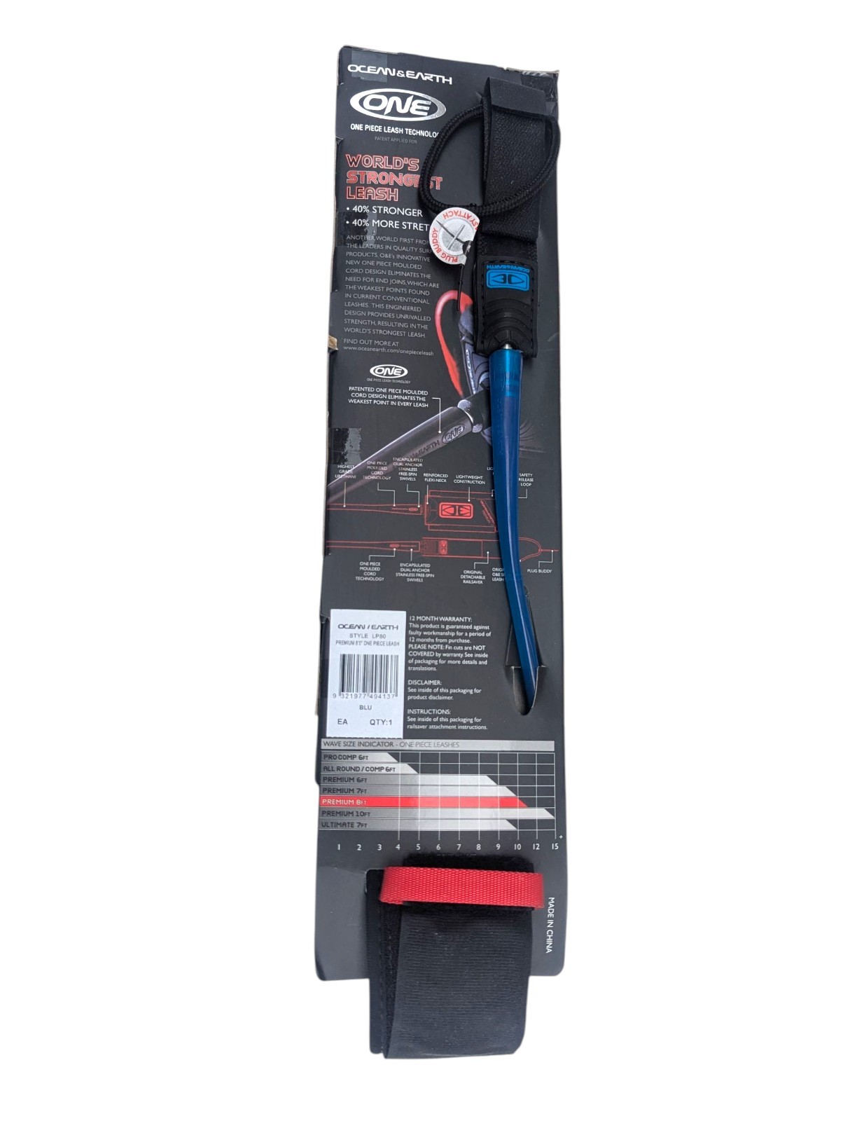 Ocean Earth Premium Surfboard Ankle One Piece leash 8ft Cord 7mm Blue New