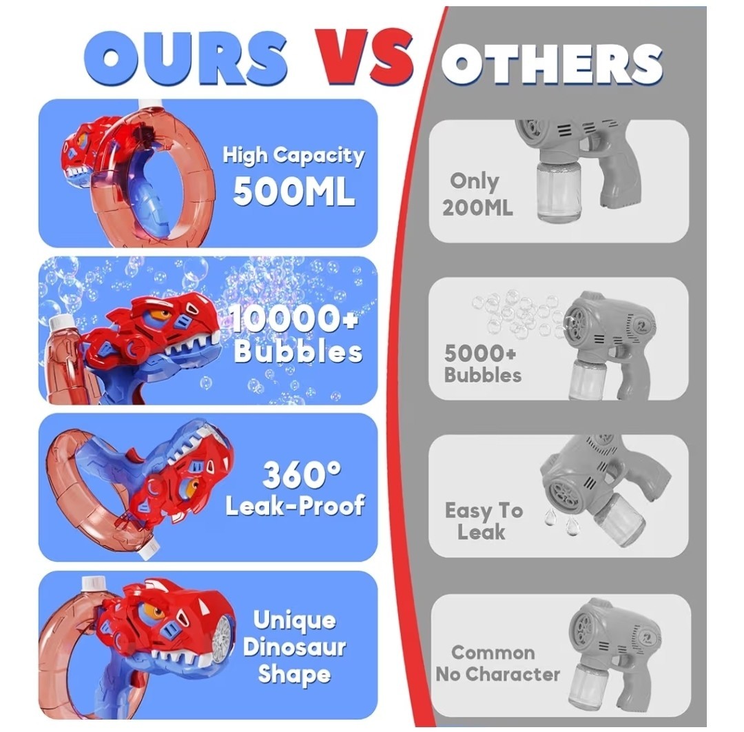 Bubble Gun, Dinosaur Bubble Guns for Toddlers Kids, Fun Bubble Blaster, Red