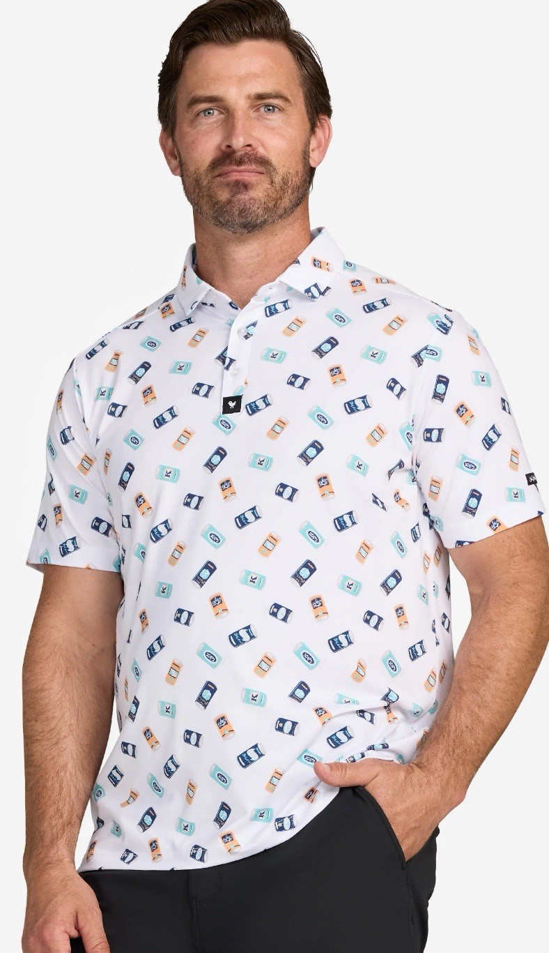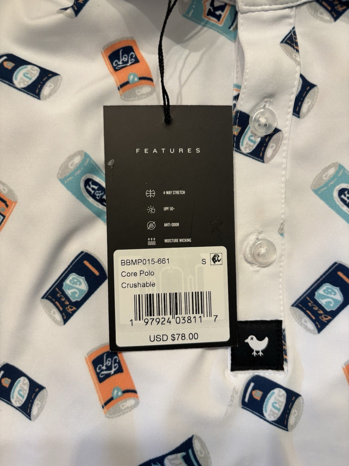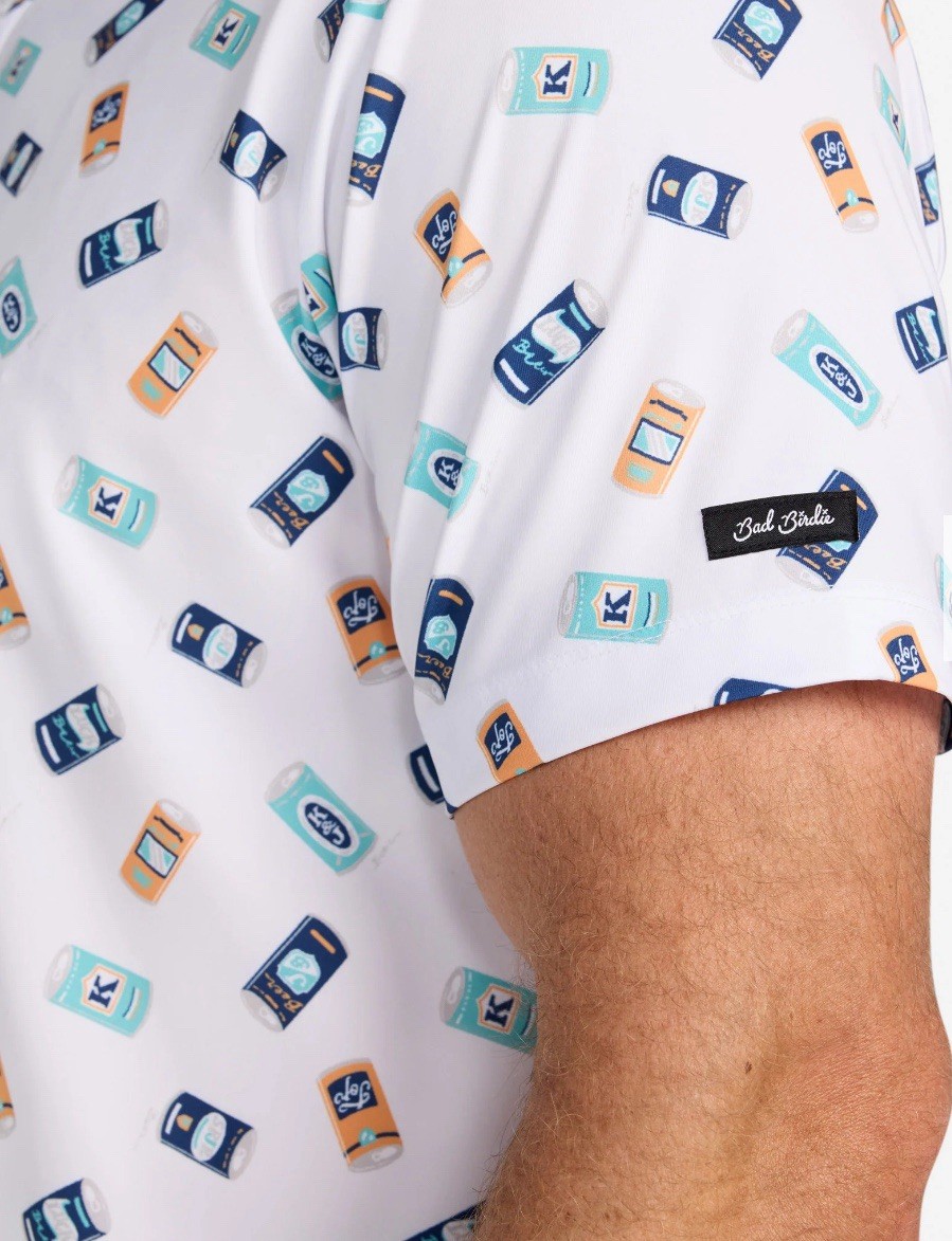 Bad Birdie Core Short Sleeve White Golf Polo Crushable Beer Can Men's Size