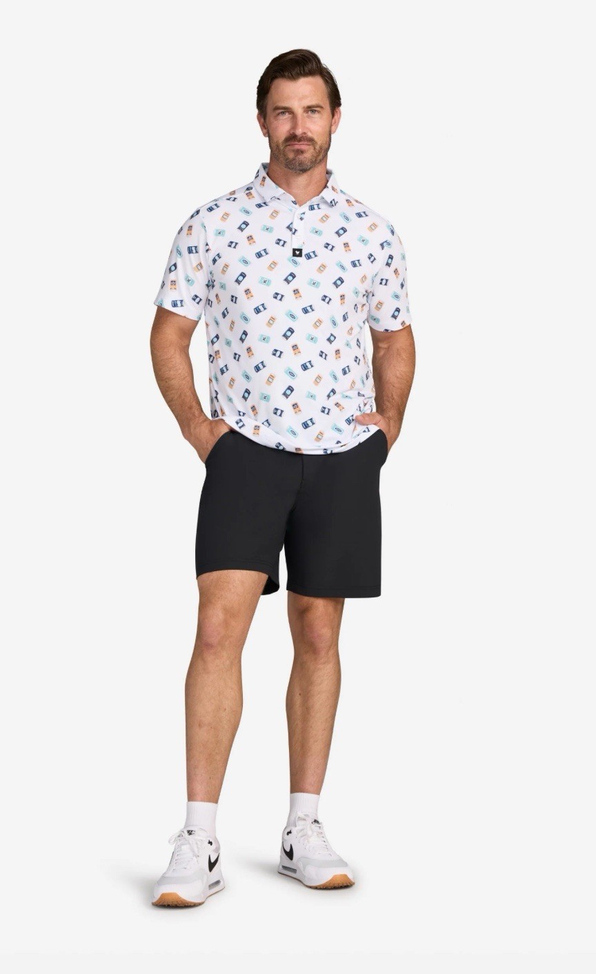 как выглядит Bad Birdie Core Short Sleeve White Golf Polo Crushable Beer Can Men