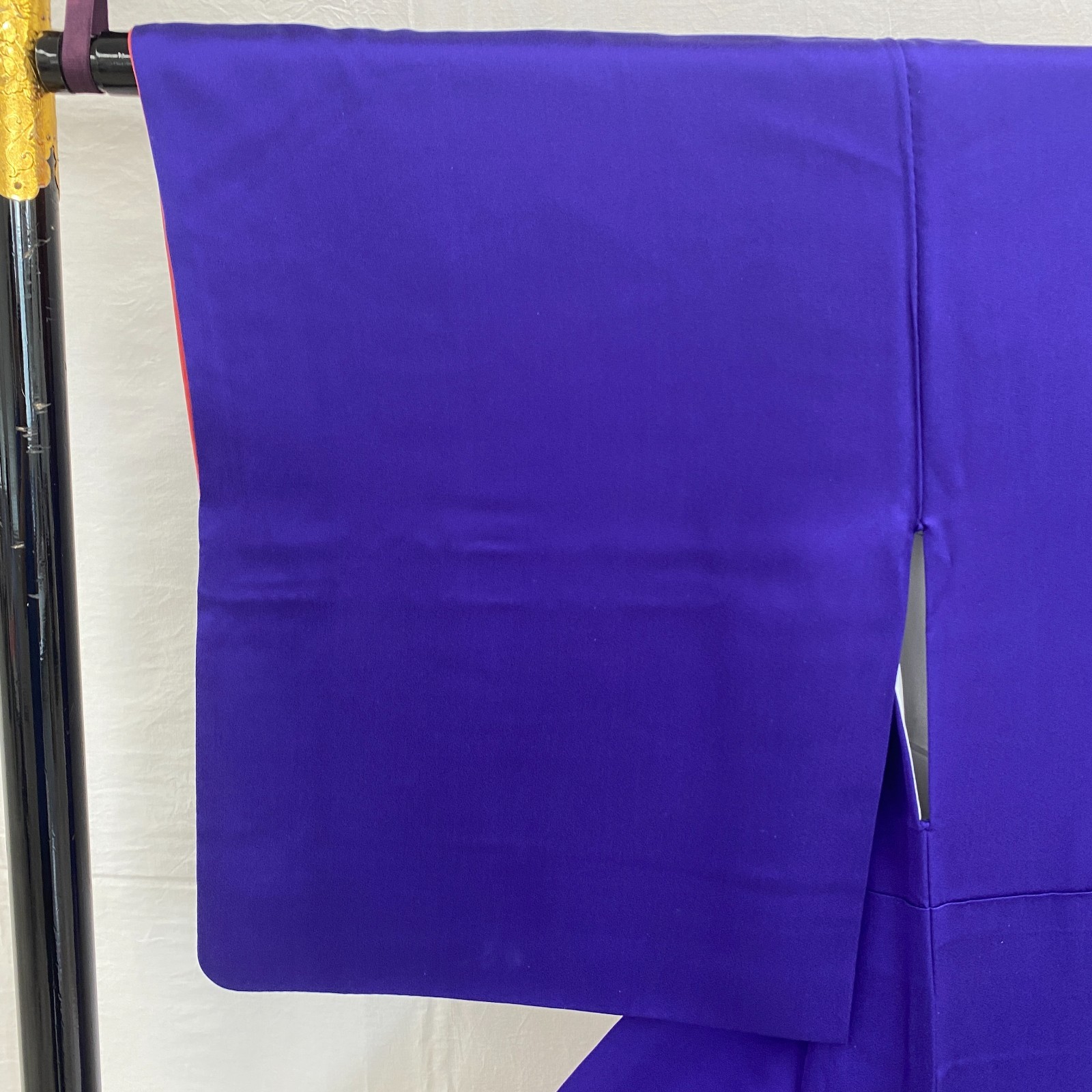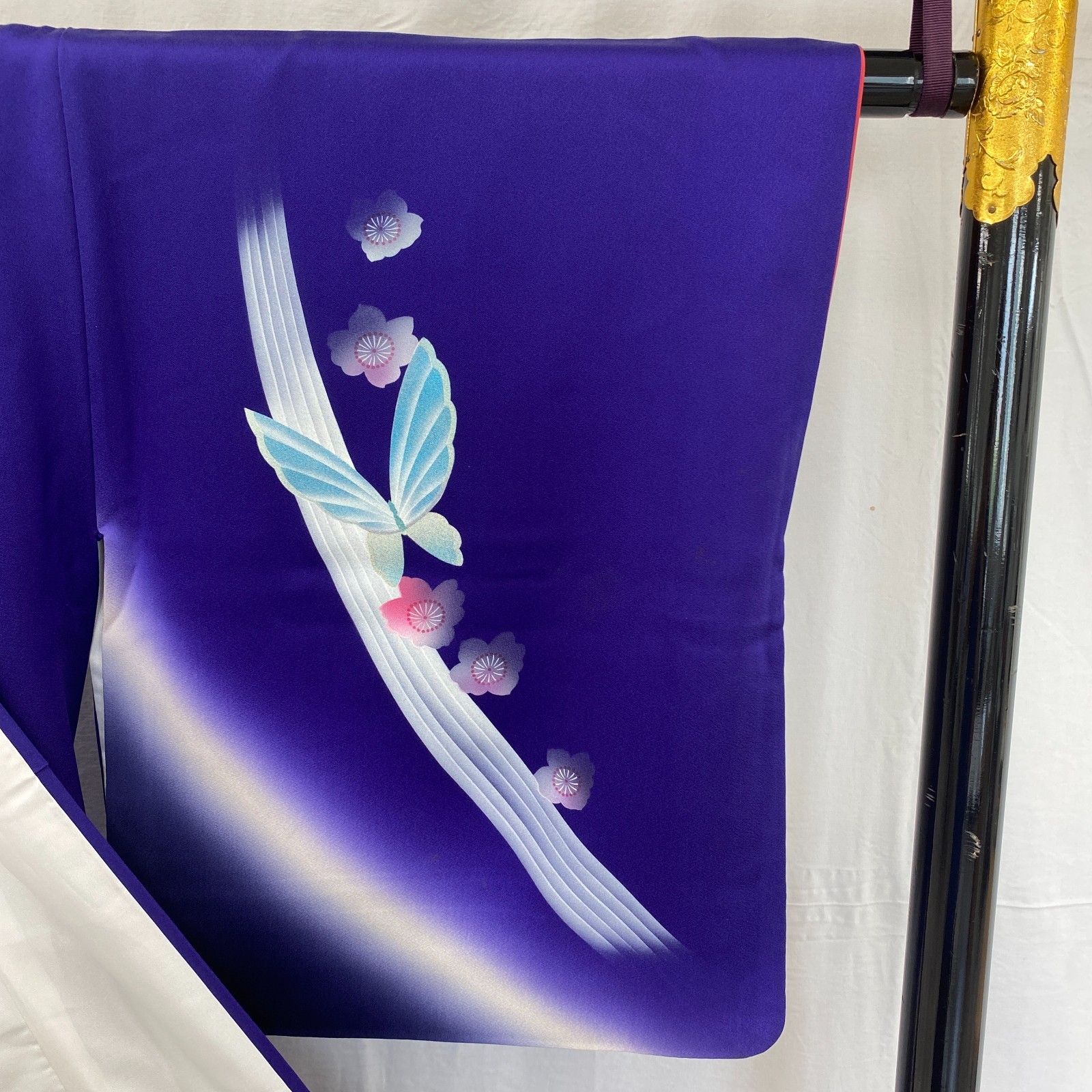 Japanese Vintage Kimono Polyester Blue Homongi Traditional Authentic Length 66in