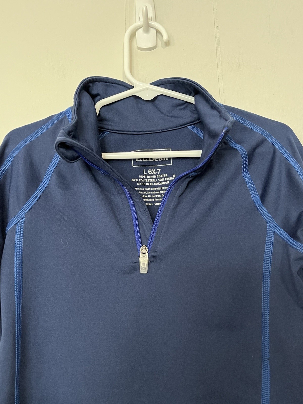LL Bean Boys Kids 1/4 Zip Fleece Lined Pullover Layer Size 6/7 XS Blue