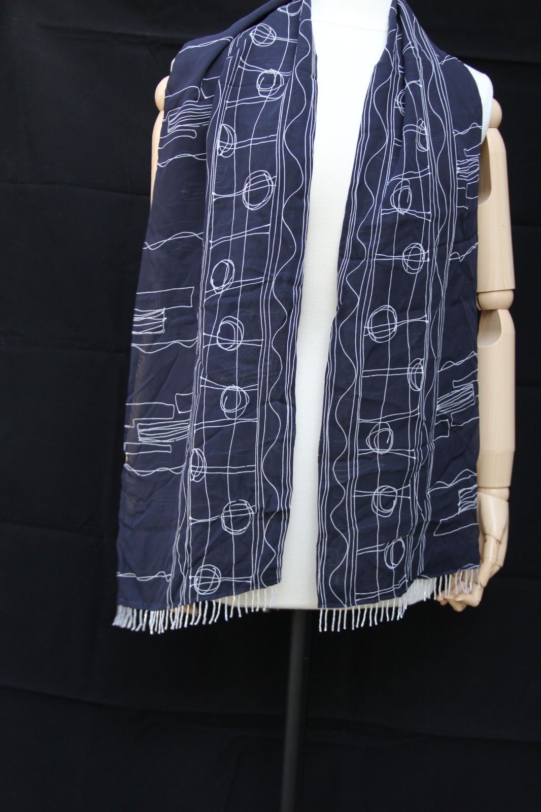 Classic Black White Geometric Pattern Neck Beaded Fringes Scarf 10 x 66