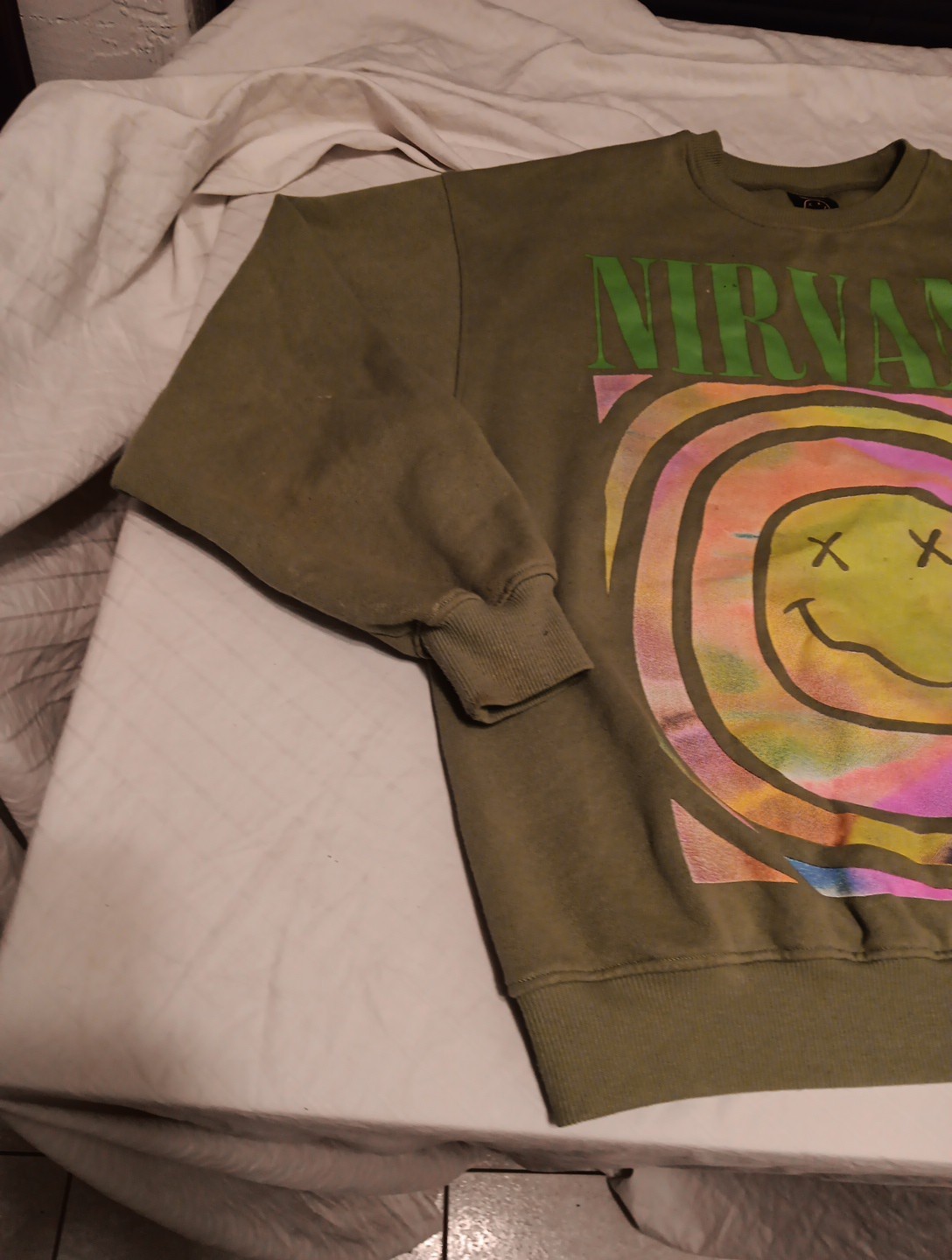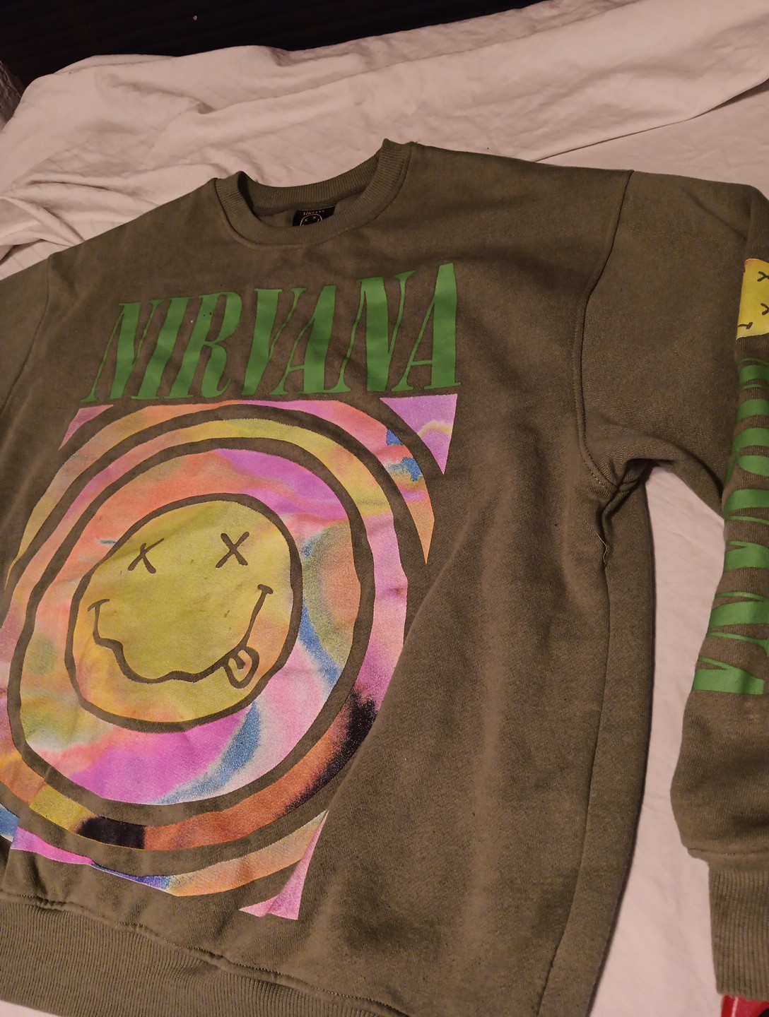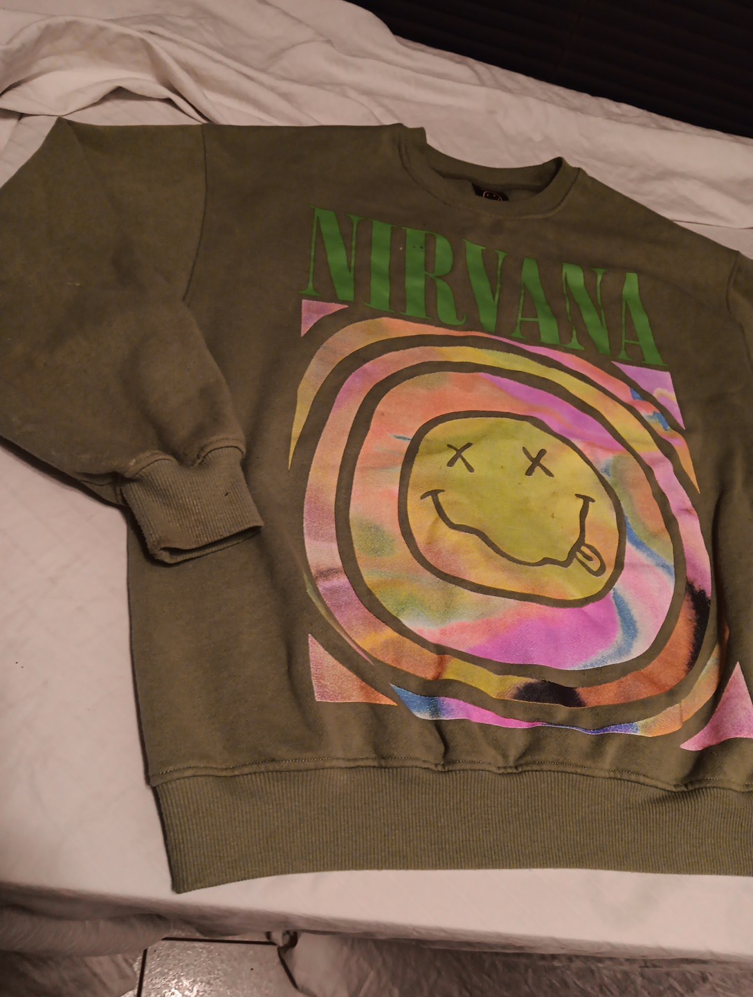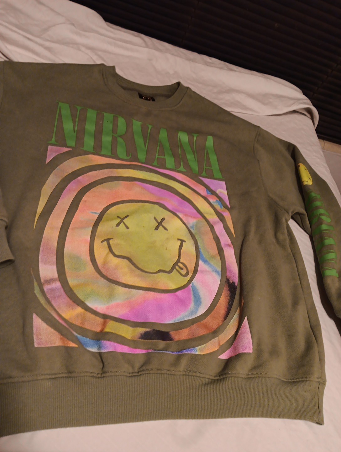 Nirvana Oversized Green Smiley Face Sweatshirt Long Sleeve Crew Neck Sz LARGE